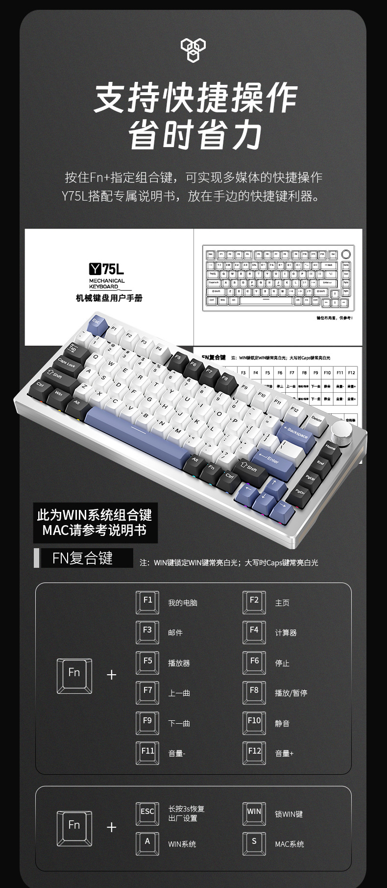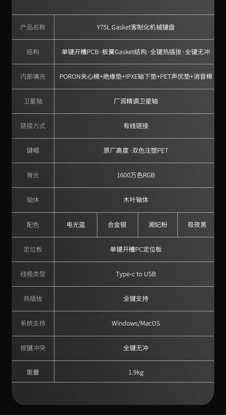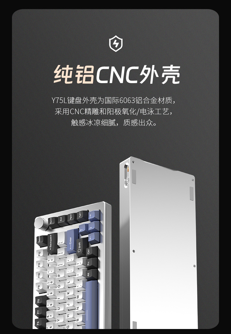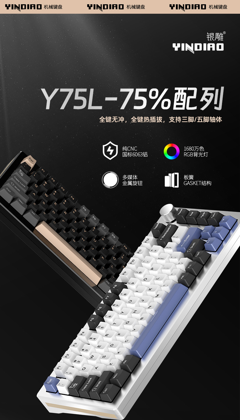 Y75 금속 알루미늄 Tuo 기계 키보드 키트 75% RGB 유선 가스켓 핫 플러그 게임 주변 장치스토어 가기