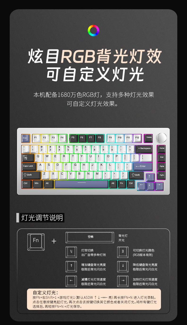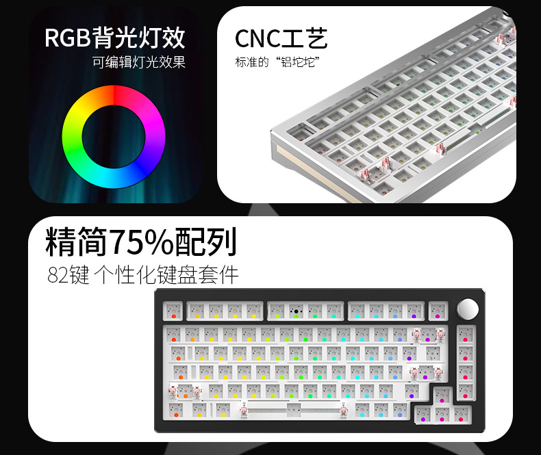 Y75 금속 알루미늄 Tuo 기계 키보드 키트 75% RGB 유선 가스켓 핫 플러그 게임 주변 장치