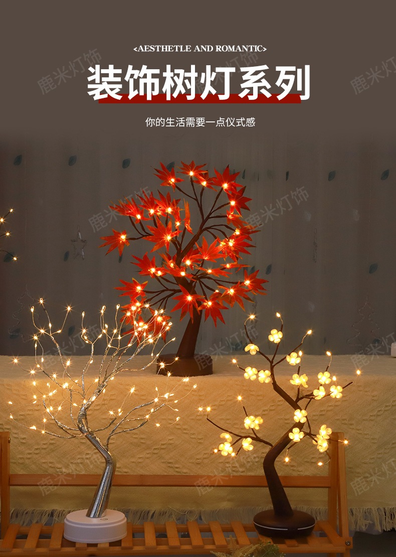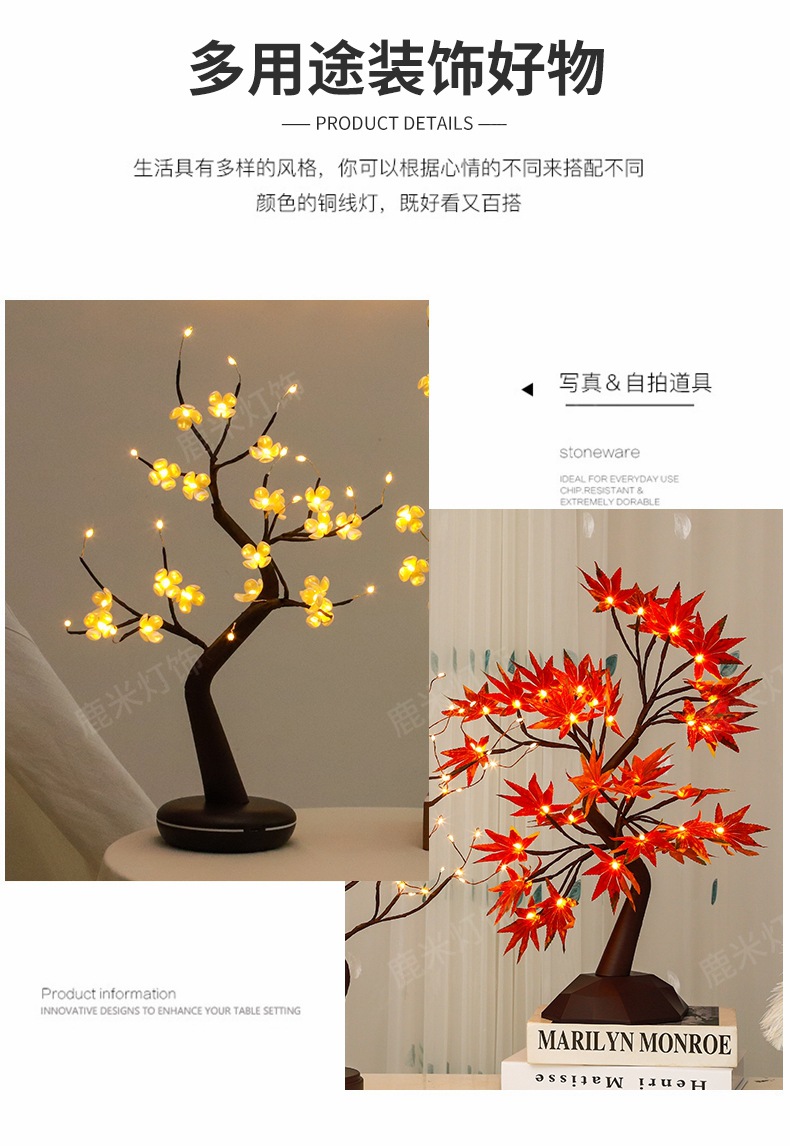 • 따뜻한 빛 36 램프-사과베이스 작은 단풍 나무 잎 다크 브라운 가지 나무 램프
