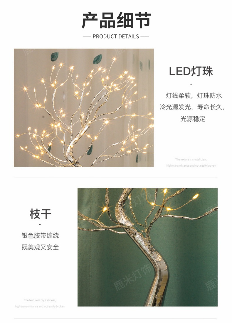 • 따뜻한 빛 108 램프-사과베이스 실버 가지 트리 램프
