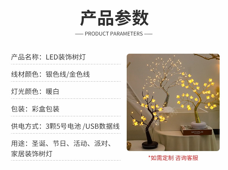 Led Gypsophila 반딧불 나무 램프 실내 디스플레이 홈 장식 램프 휴일 파티 레이아웃 빛나는 야간 조명