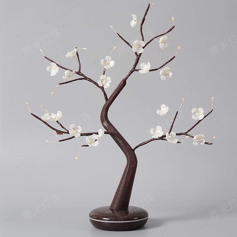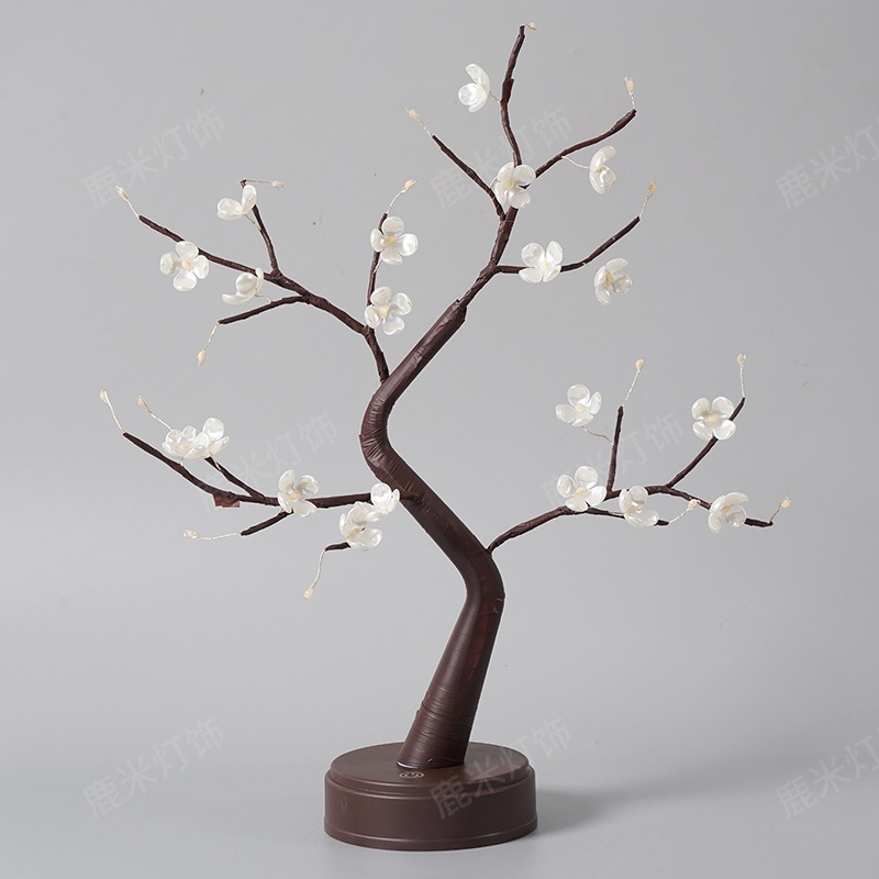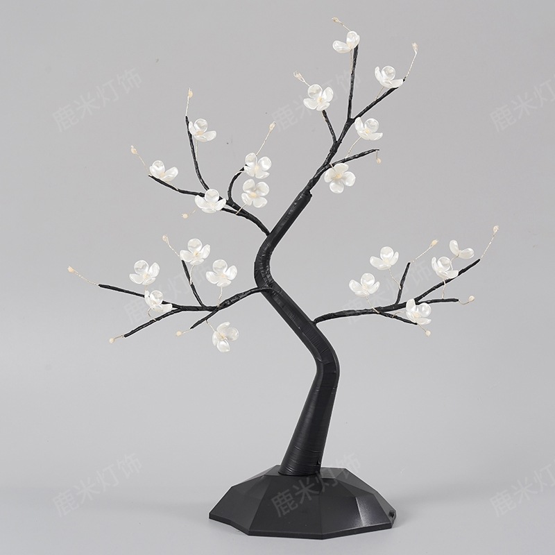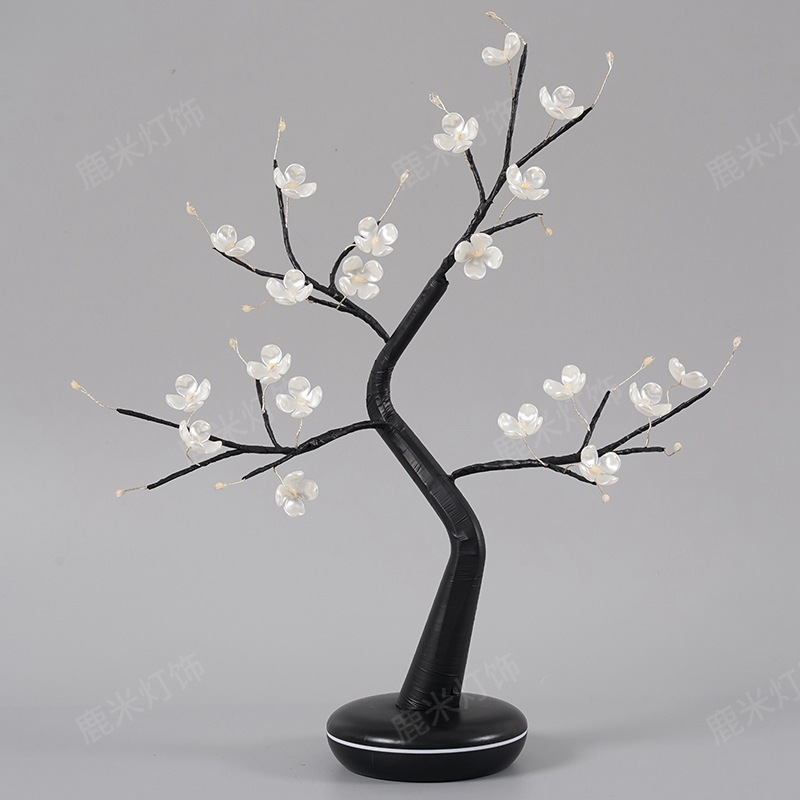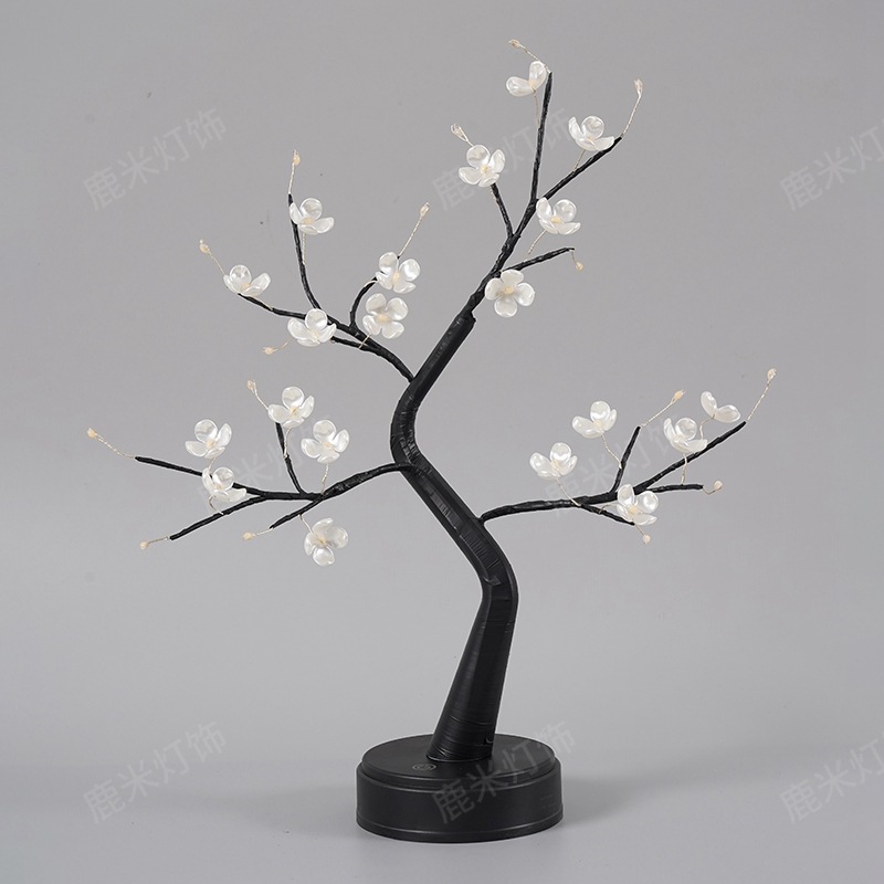 • 따뜻한 빛 36 램프 다이아몬드베이스 4 잎 꽃 봉오리 검은 가지 나무 램프