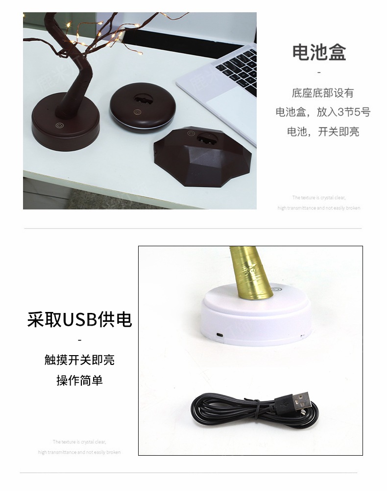 • 따뜻한 빛 36 램프-다이아몬드베이스 4 잎 꽃 황금 가지 나무 램프