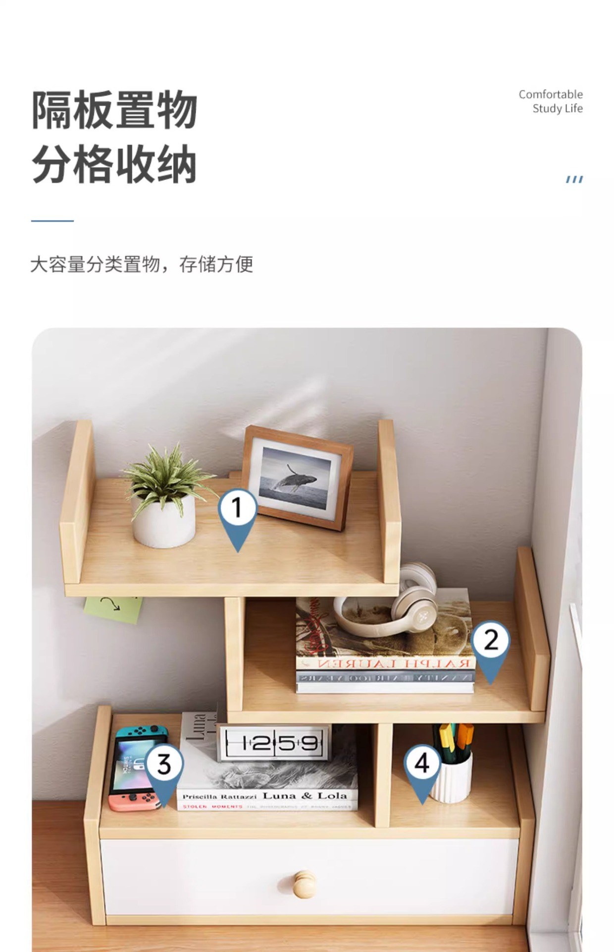 • [3 층-높이 추가] 로그 그레인 색상 40*18*71cm