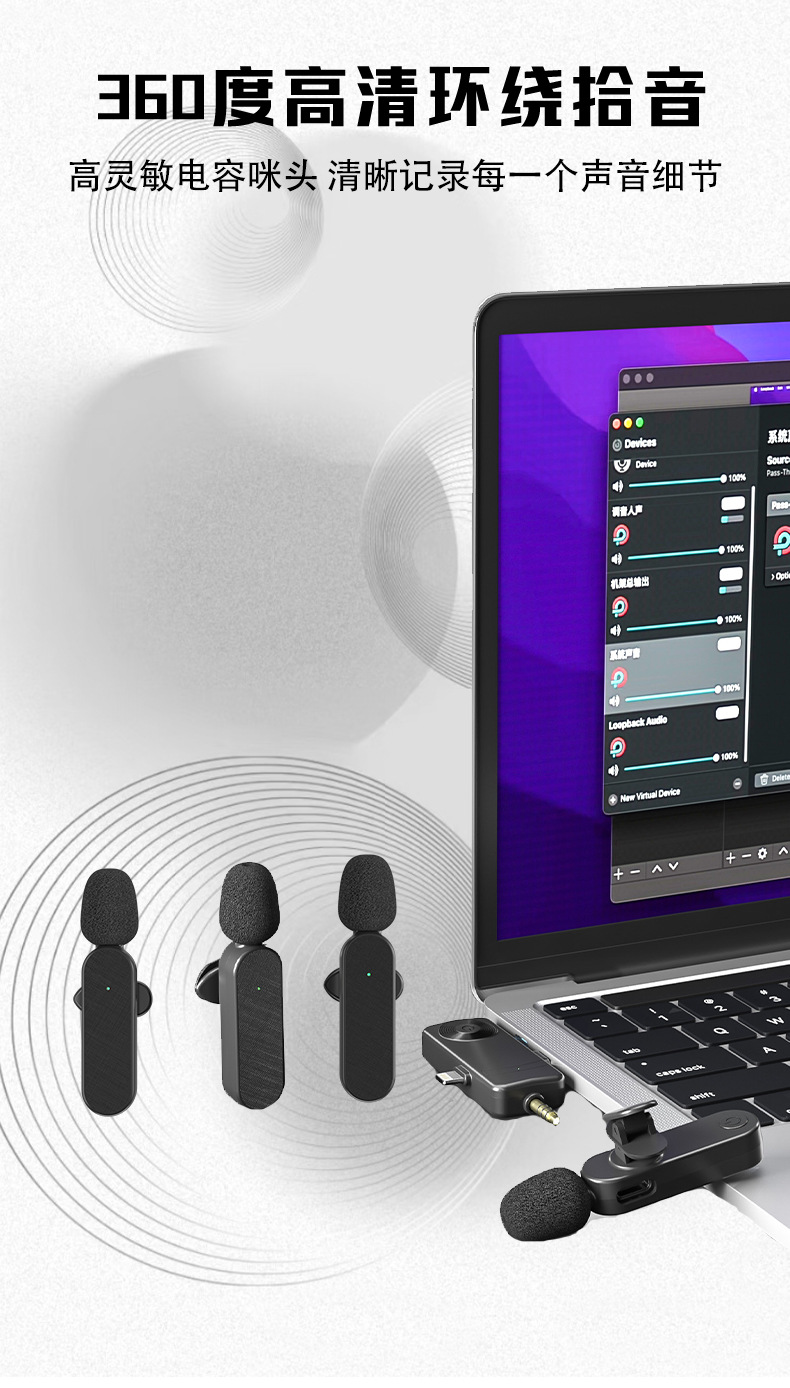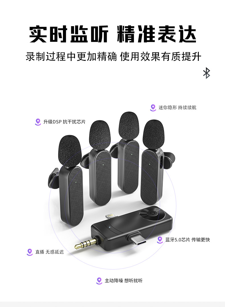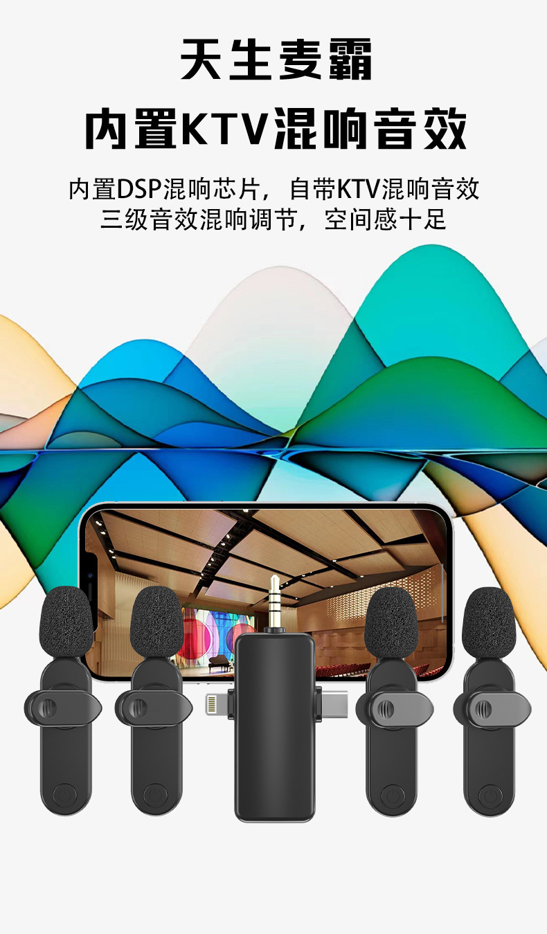 무선 라펠 마이크 K15QQ 버튼형 3-in-1 야외 라이브 방송 휴대폰 촬영 소음 감소 녹음 마이크