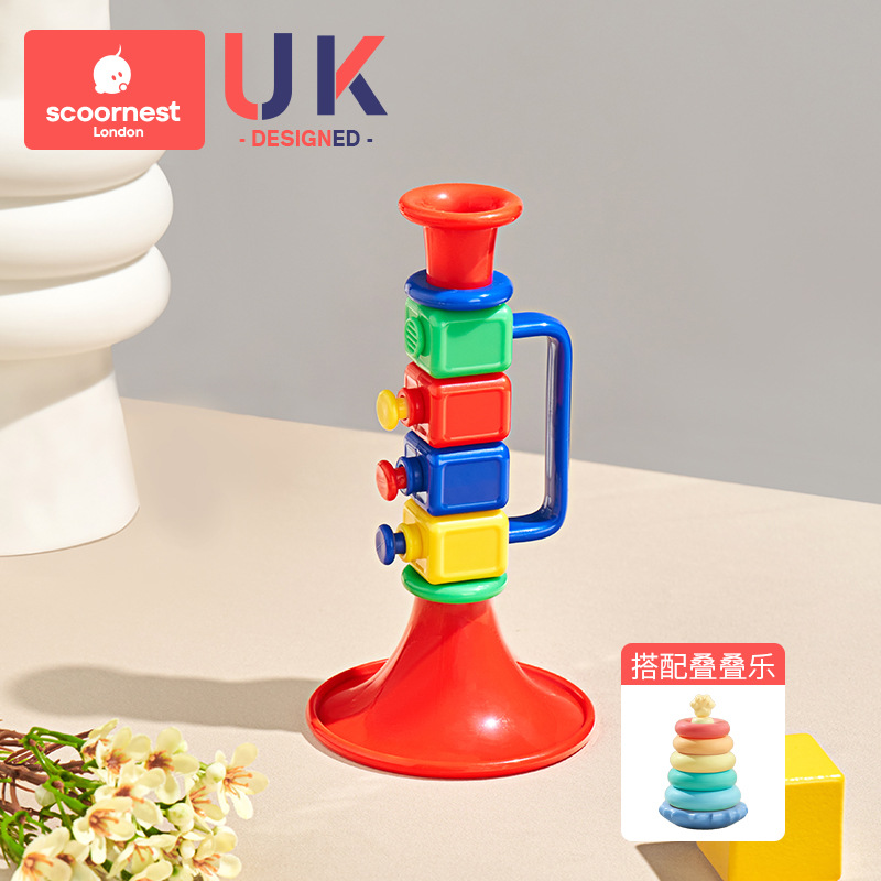 작은 트럼펫 아기 어린이 아기 장난감은 악기를 불어 넣을 수 있습니다 0-3 세 1 호루라기 호른 하모니카 2스토어 가기