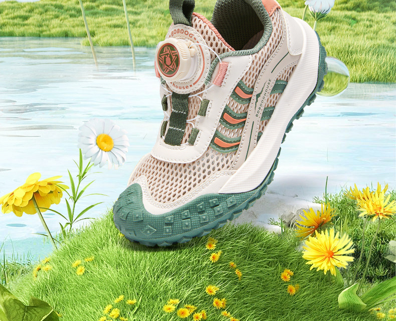 바부 콩 싱글 메쉬 남성용 신발 스위블 버튼 여름 메쉬 통기성 운동화 여성 대형 어린이 소프트 솔 러닝화