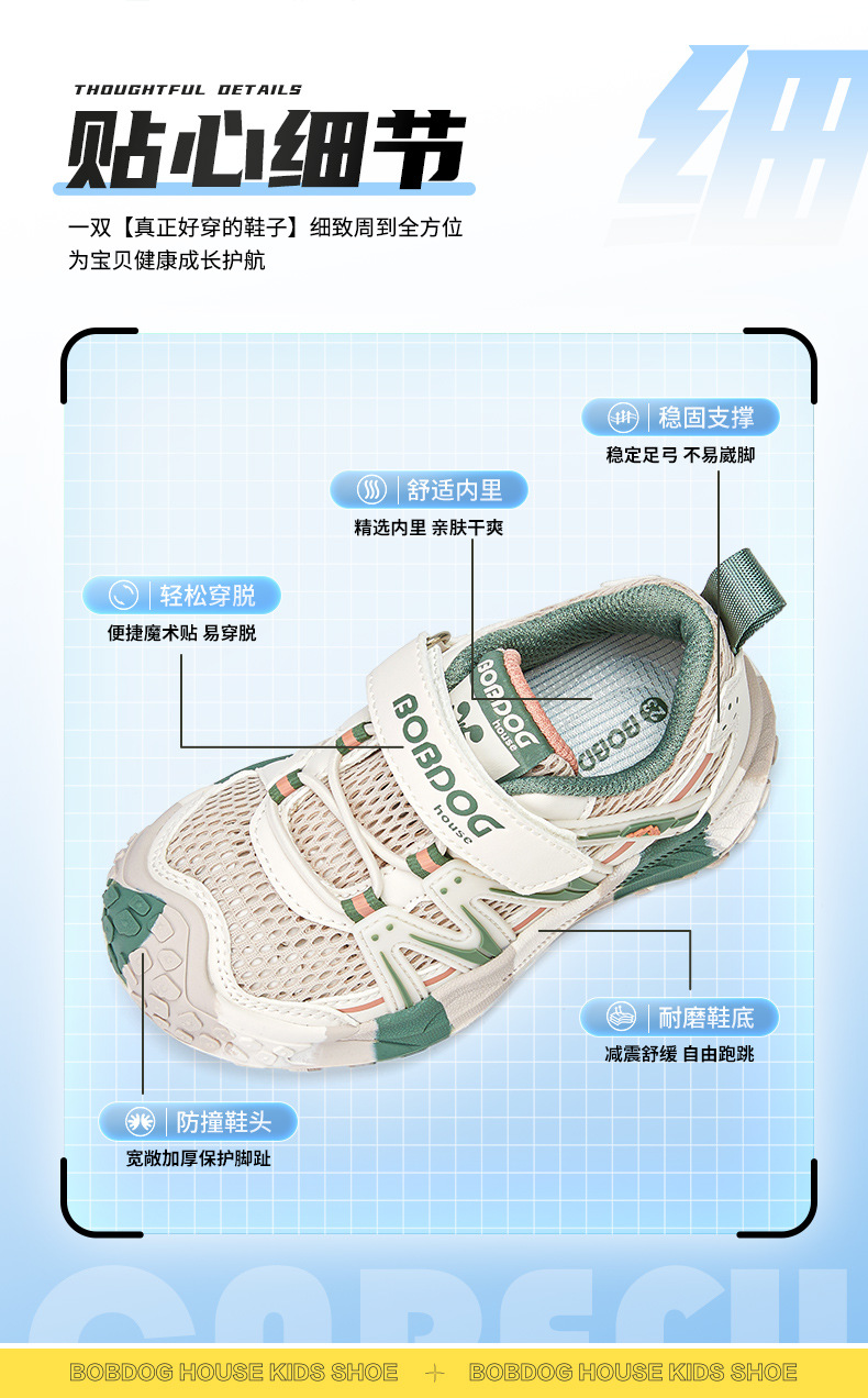 바부 빈 어린이 신발 남성용 미끄럼 방지 여름 스포츠 신발 싱글 메쉬 통기성 유아 신발 소년 샌들 소녀 운동화