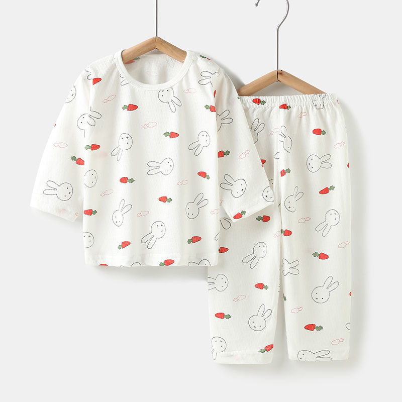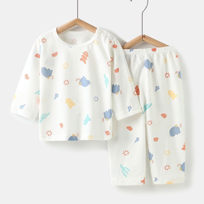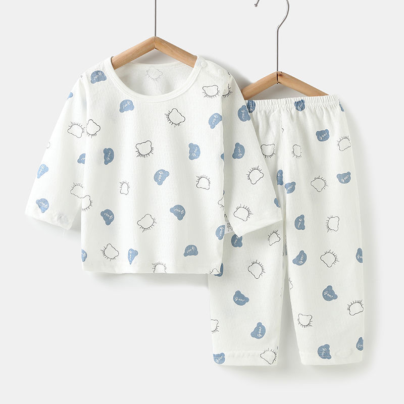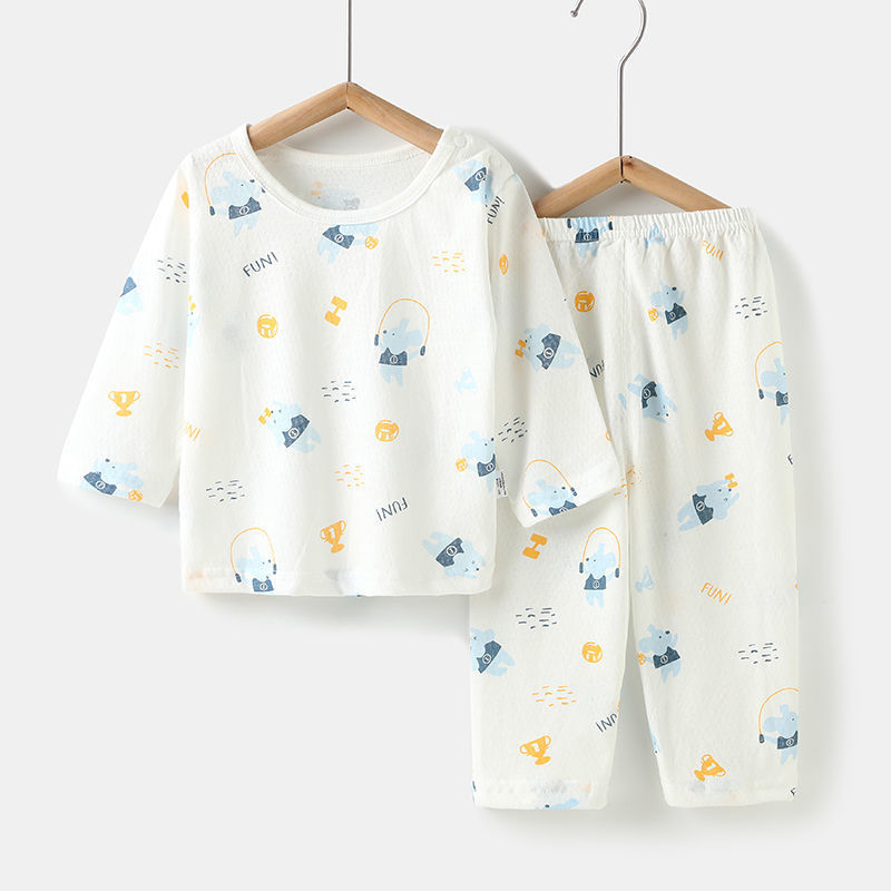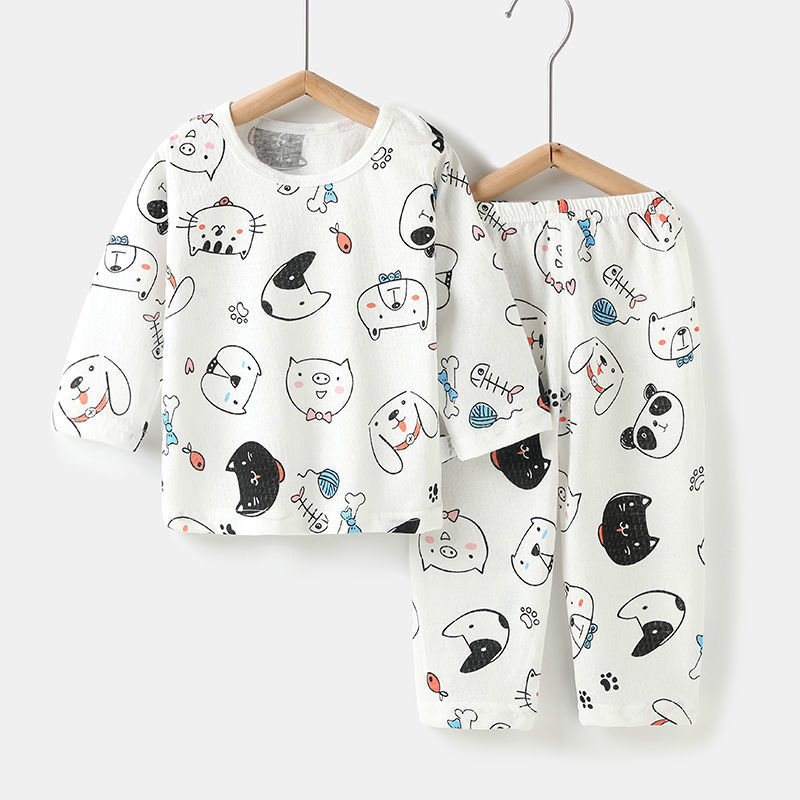 아기의 에어컨 세트 얇은 긴팔 여름 면화 남자의 큰 어린이 집 옷 여름 옷 여성 어린이 잠옷 여름 여름