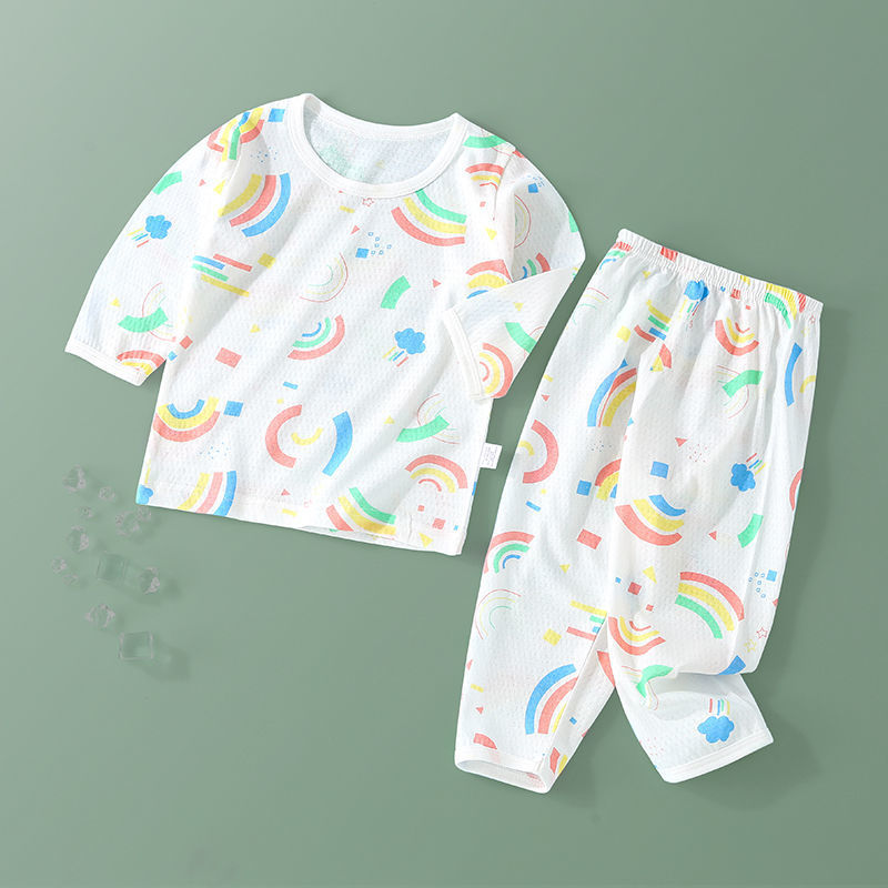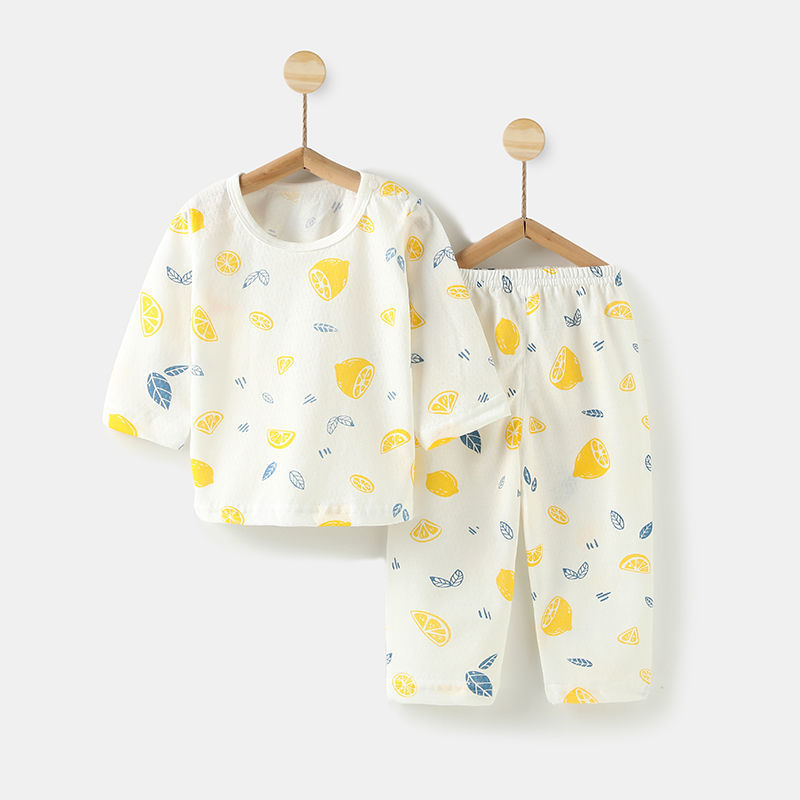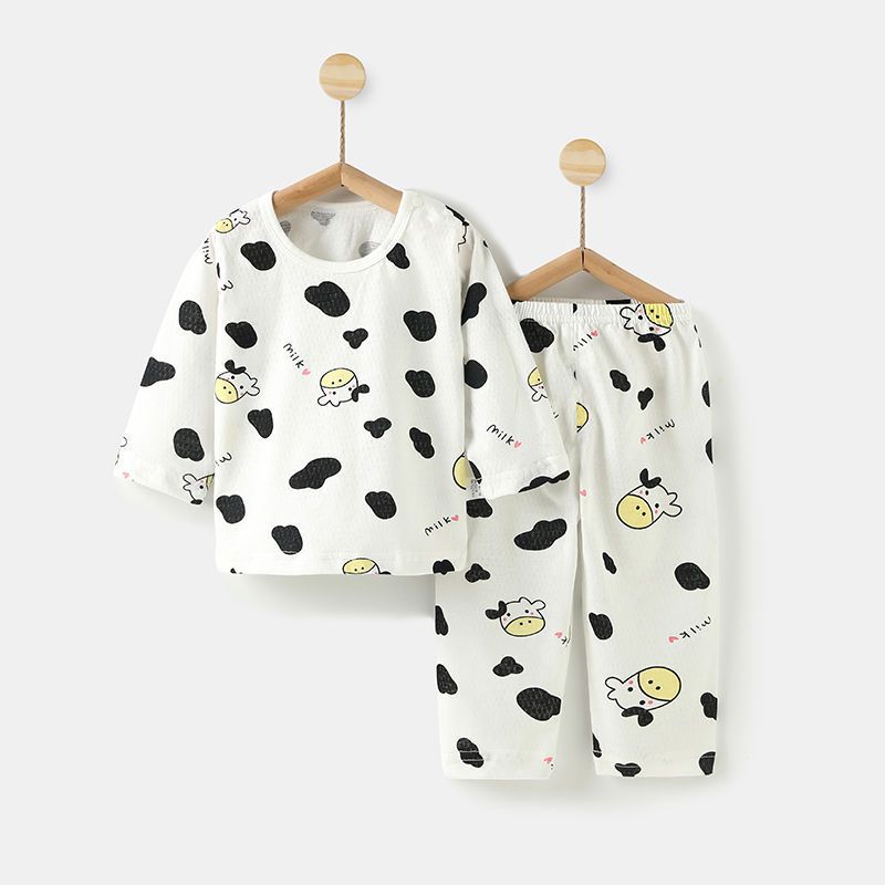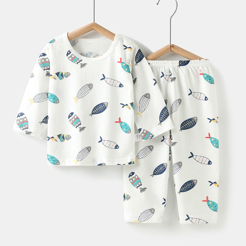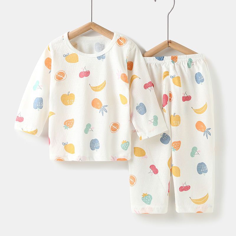아기의 에어컨 세트 얇은 긴팔 여름 면화 남자의 큰 어린이 집 옷 여름 옷 여성 어린이 잠옷 여름 여름