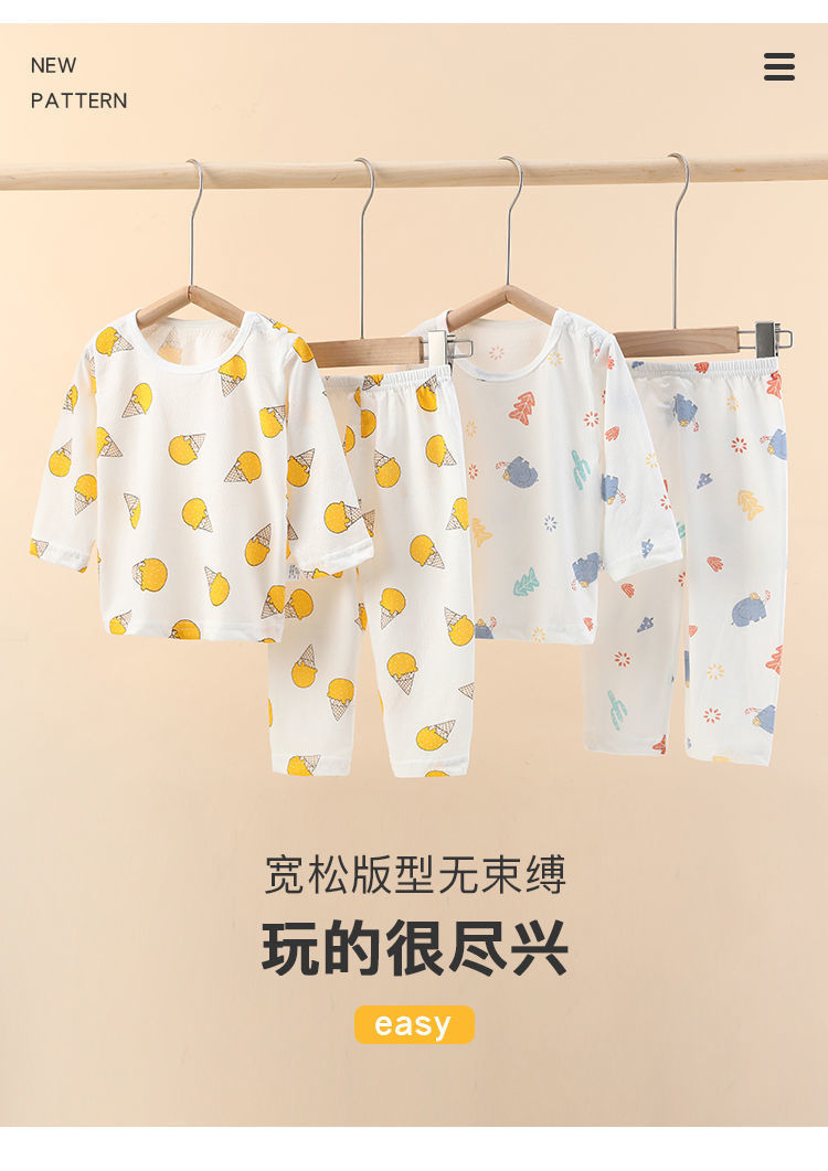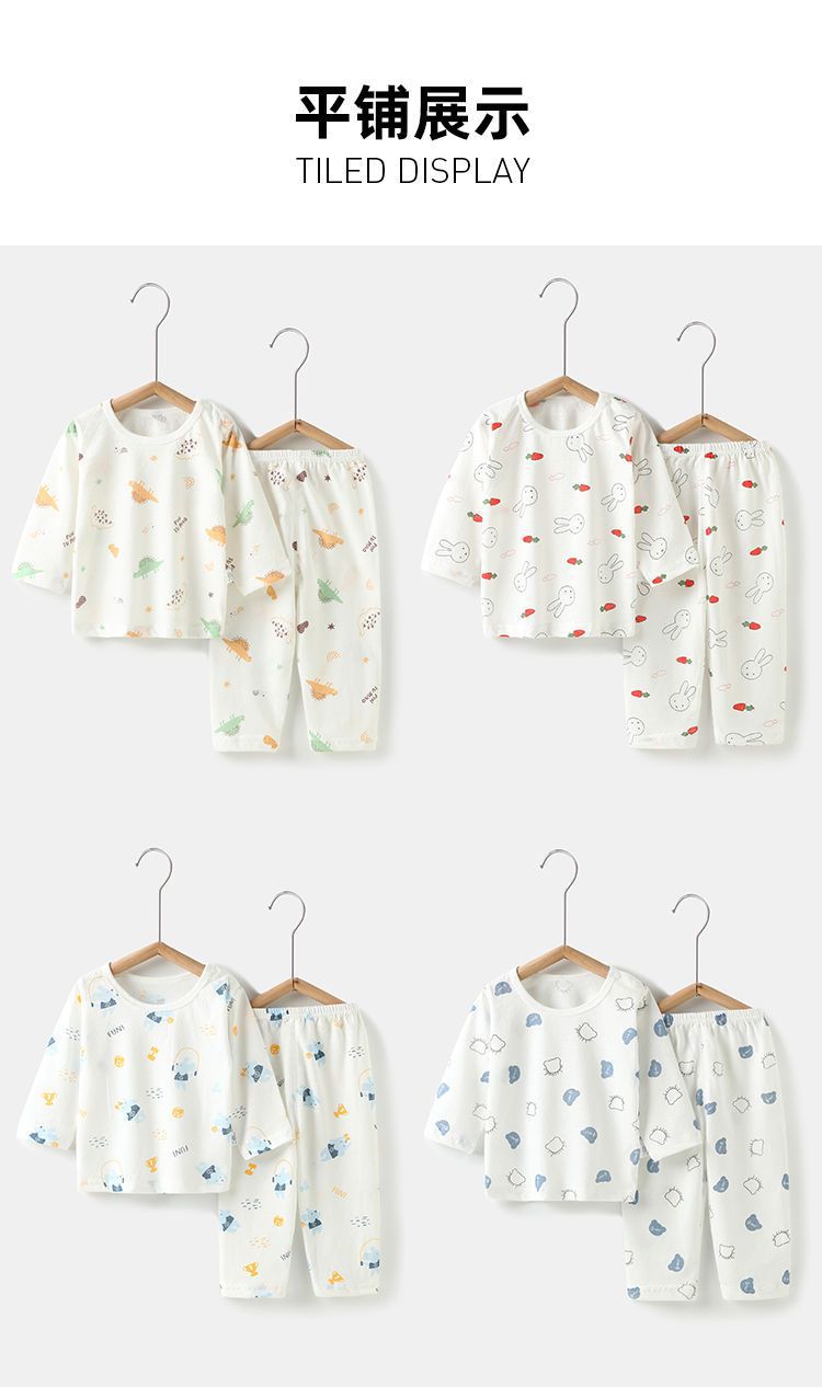 아기의 에어컨 세트 얇은 긴팔 여름 면화 남자의 큰 어린이 집 옷 여름 옷 여성 어린이 잠옷 여름 여름스토어 가기