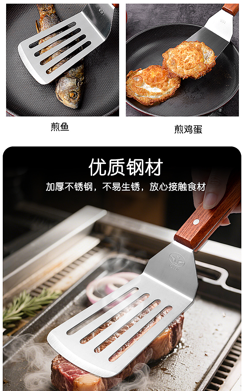 스테인레스 스틸 스테이크, 생선 주걱, 철판구이 주걱, 핸드케이크, 팬케이크 베이킹 주방용품을 직접 판매하는 공장스토어 가기