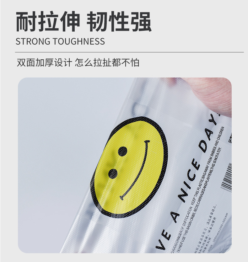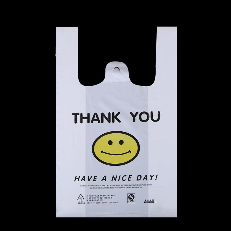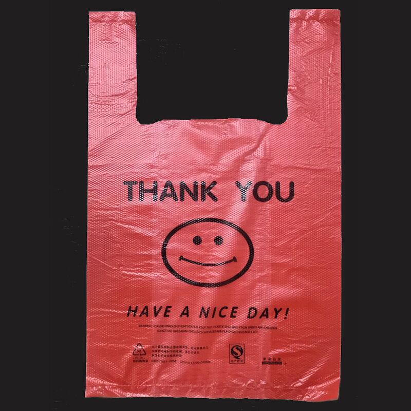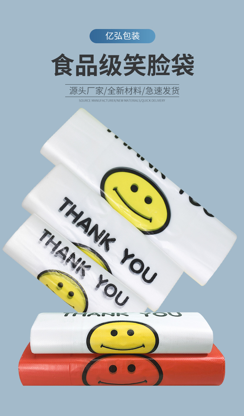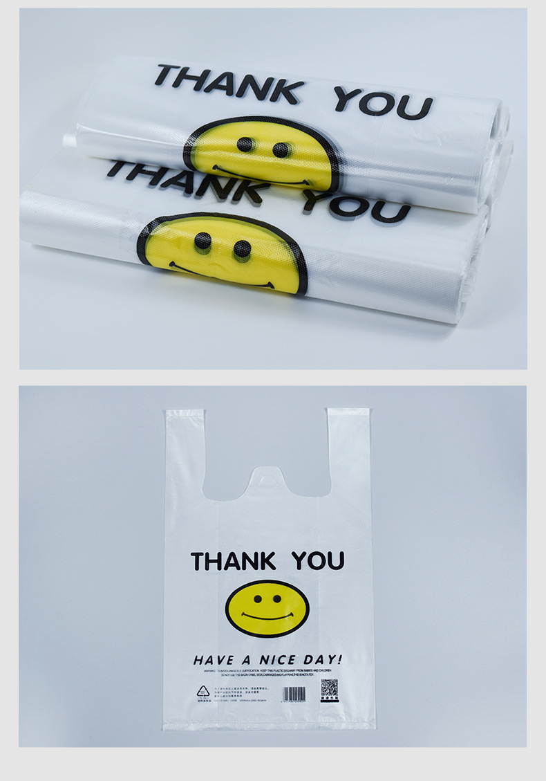 투명한 웃는 얼굴 가방 테이크 아웃 포장 슈퍼마켓 쇼핑 과일 조끼 가방 빨간 웃는 얼굴 비닐 봉지 인쇄 로고