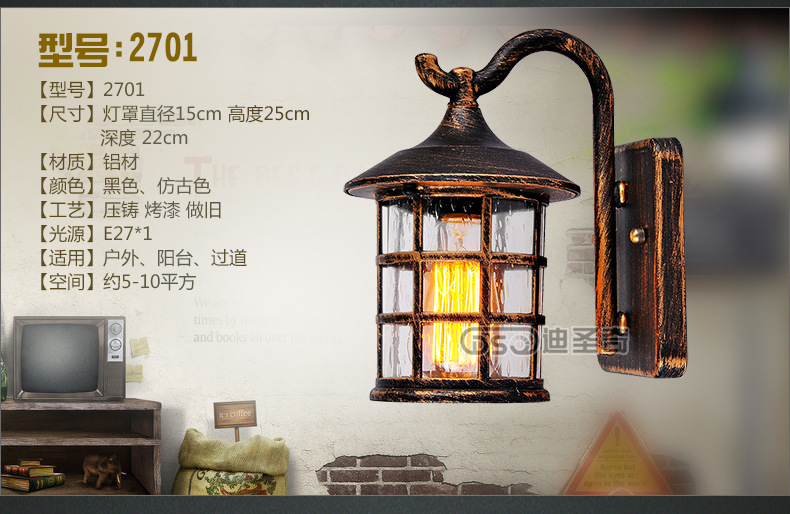 야외 방수 벽 램프 미국 국가 빈티지 발코니 램프 안뜰 침대 옆 유럽 스타일 야외 방비 벽 램프스토어 가기