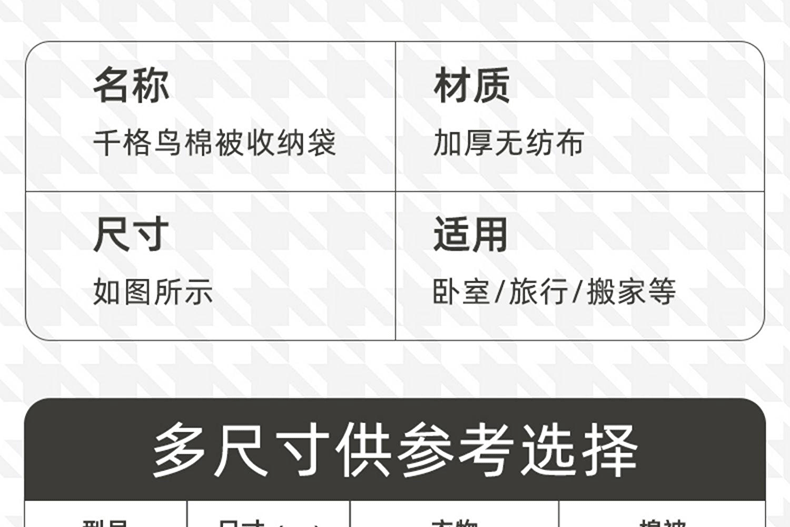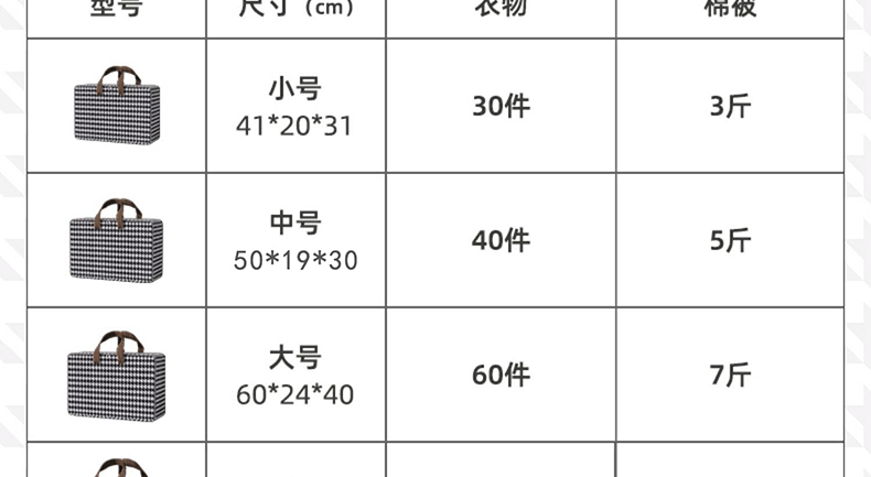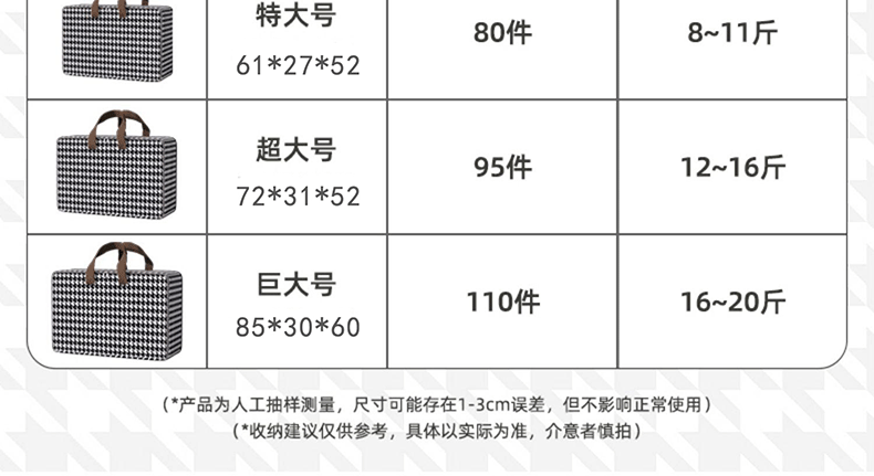 접이식 보관 가방 2024 Houndstooth 휴대용 보관 가방 옷 이불 이동 마무리 가방 보관