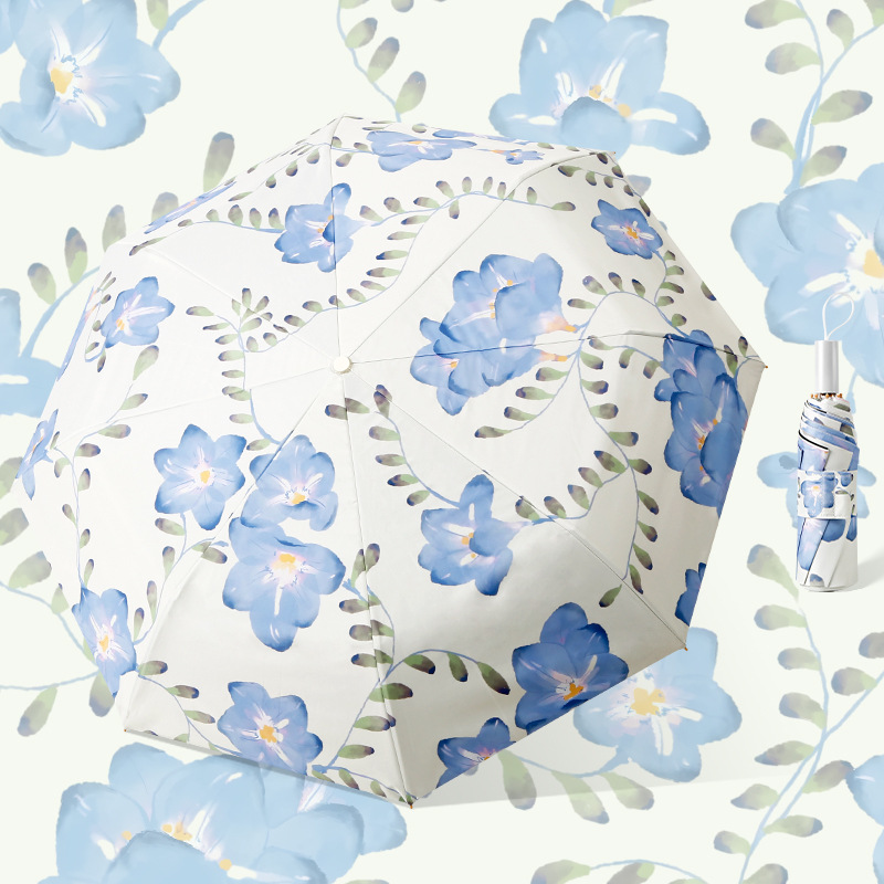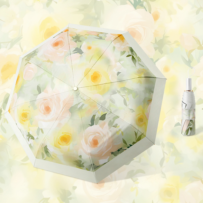 • 나무 손잡이가 달린 컬러 접착제 자외선 차단제 작은 신선한 우산 - Lanxin Jasmine (자외선 차단 및 방수)
