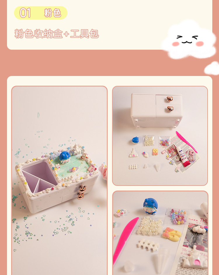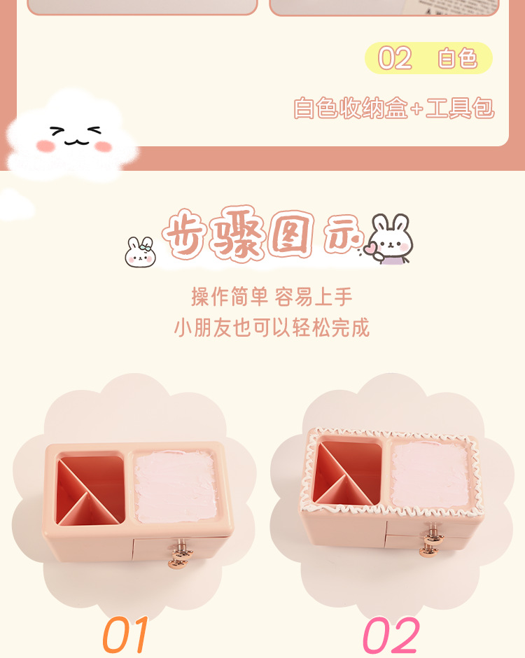 • 핑크 토끼와 곰 무작위 핸들 펜 홀더 보관 상자 + 재료 패키지 + 하드 커버 컬러 박스