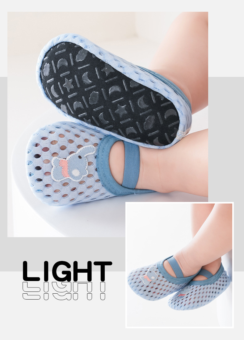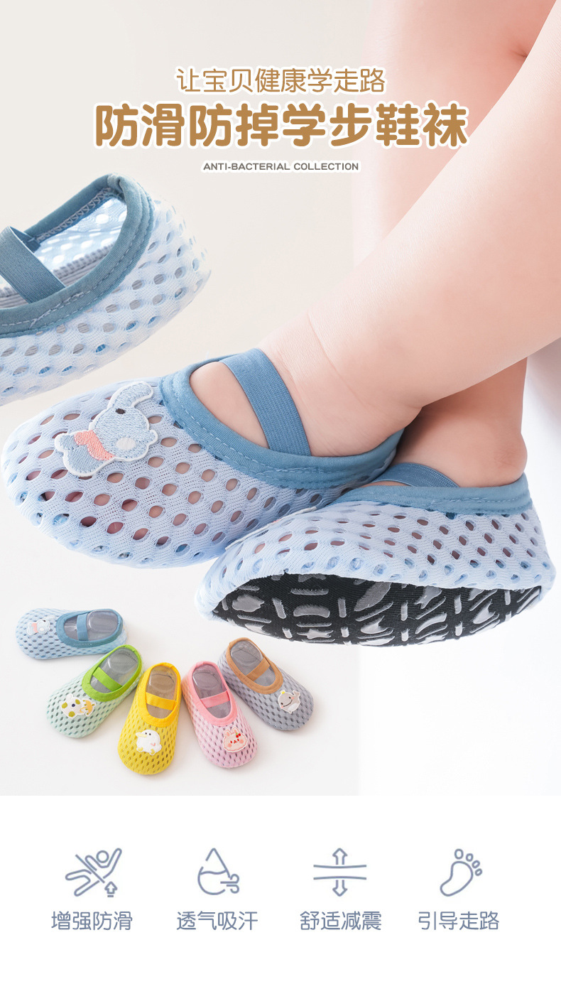 아기 바닥 신발 봄과 여름 얇은 미끄럼 방지 바닥 시원한 아기 부드러운 바닥 유아 실내 어린이 메쉬 신발 및 양말스토어 가기