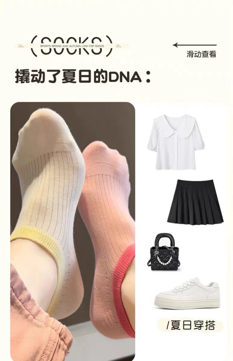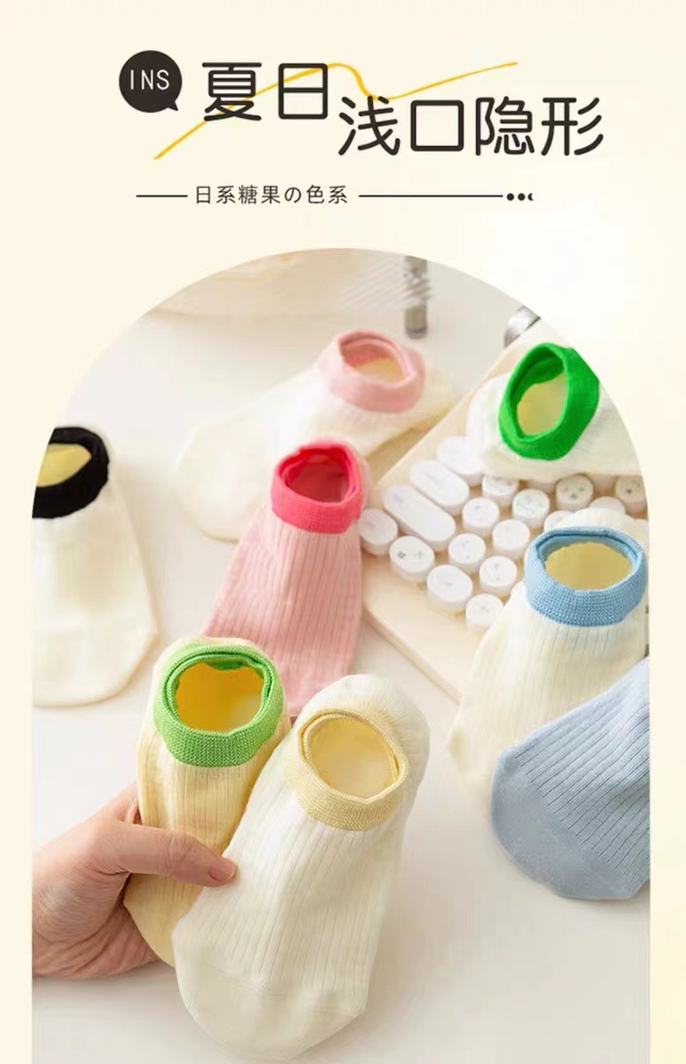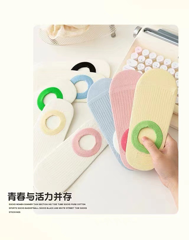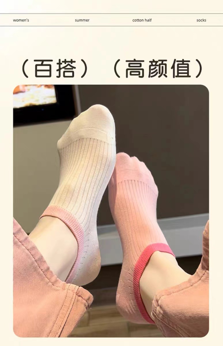 여성용 양말, 순면 보트 양말, 미끄럼 방지, 낙하 방지, 로우 컷 양말, 얇은 아이스크림 컬러 블록 보이지 않는 양말, 얕은 입 양말스토어 가기
