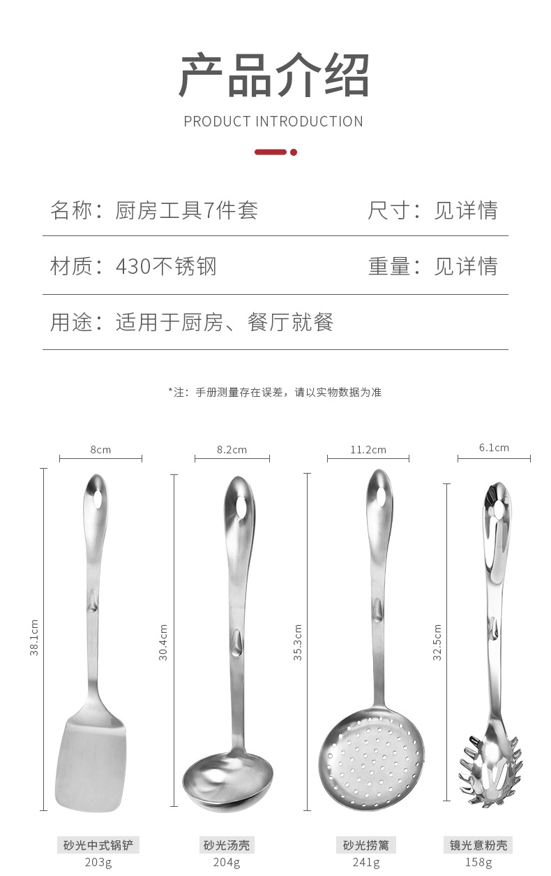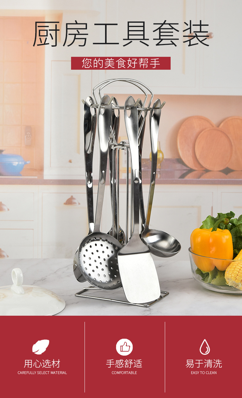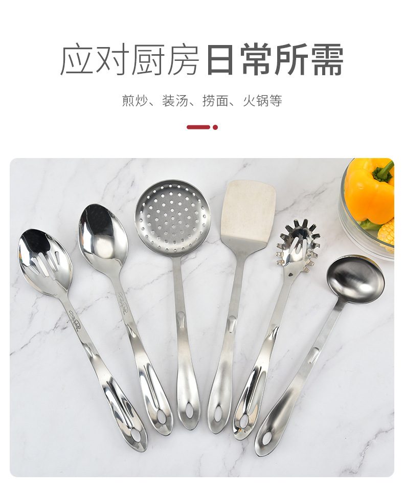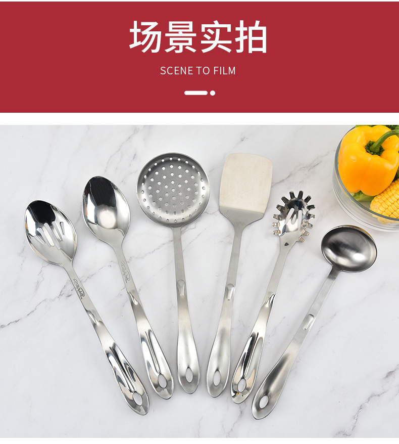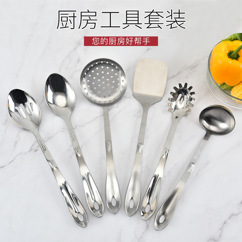 공장 용품 직접 공급 스테인레스 스틸 주걱 주방 6 개 세트 요리 도구 주걱 수프 숟가락 소쿠리 주걱 세트스토어 가기