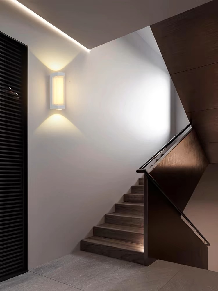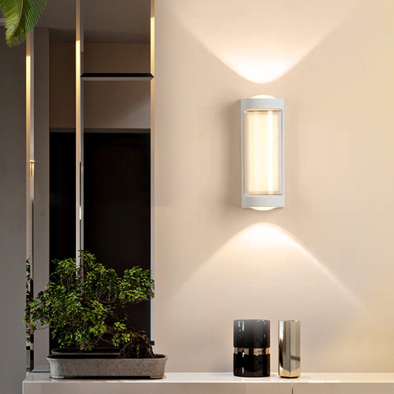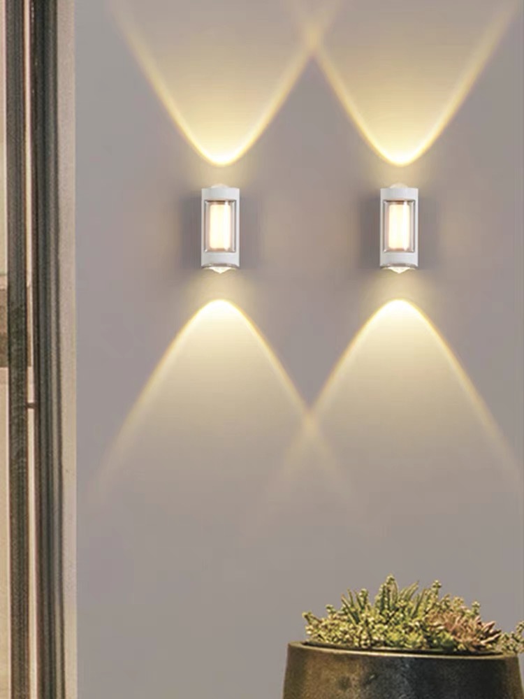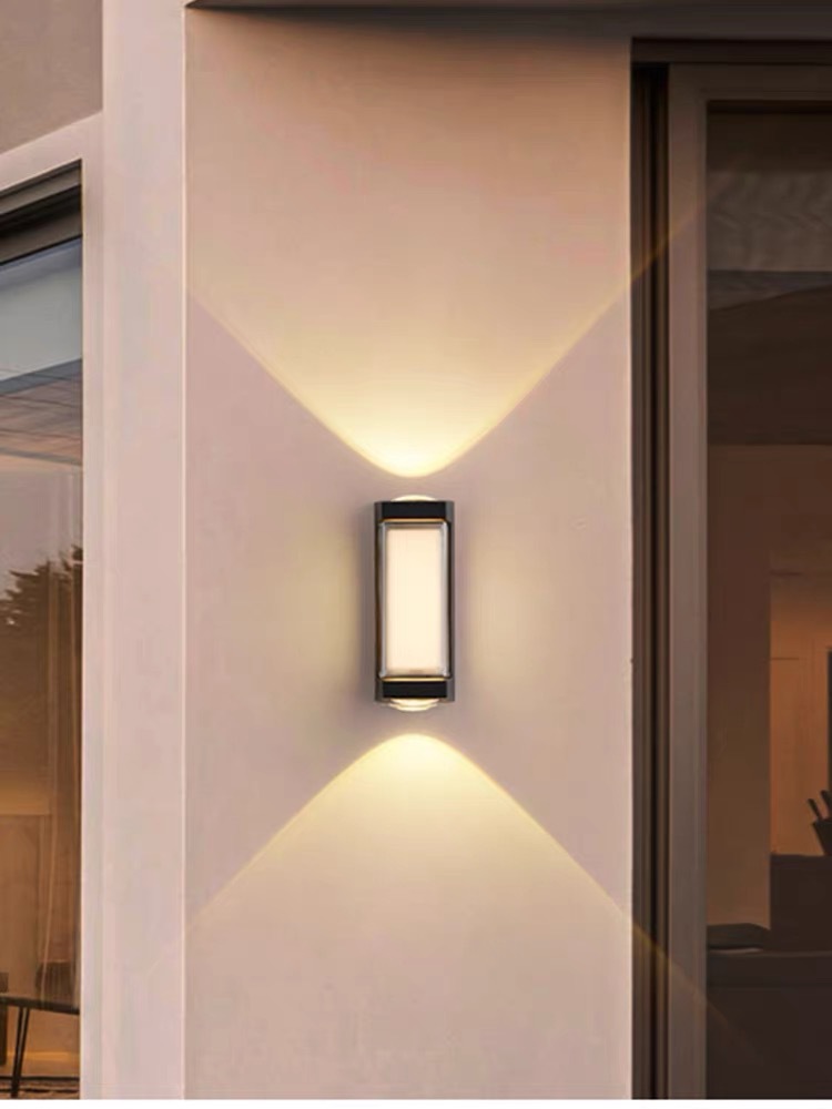 야외 벽 램프 방수 더블 레이어 PC 더블 헤드 스포트라이트 현대 간단한 거실 침실 야외 위아래로 빛나는 벽 램프
