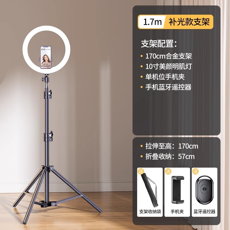 • 1.7m [탄소 합금 브래킷이있는 상단] 26cm 뷰티 램프 단일 위치 [선물 저장 가방 블루투스 원격 제어]]