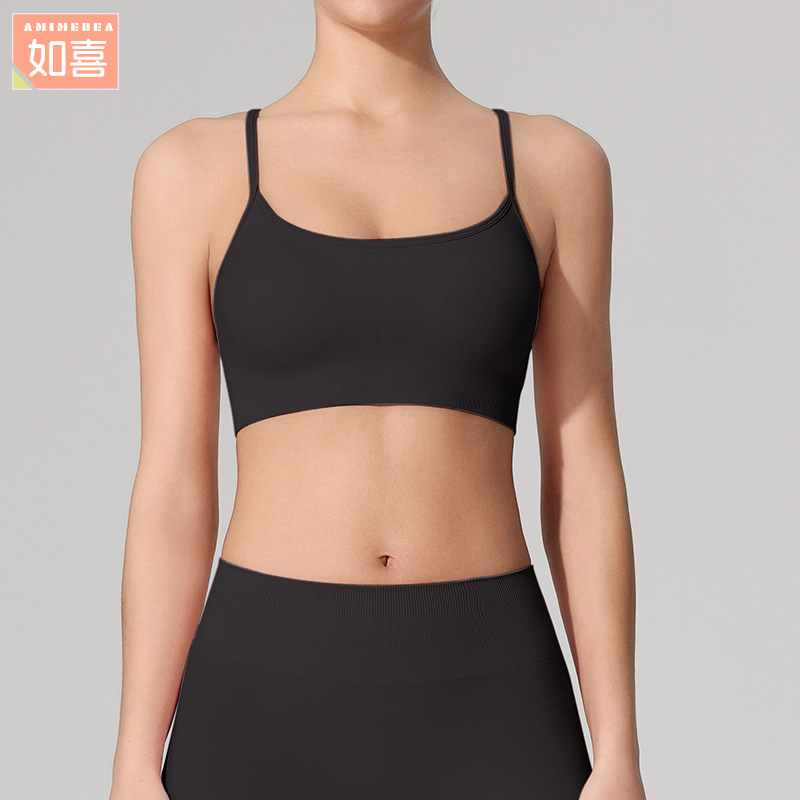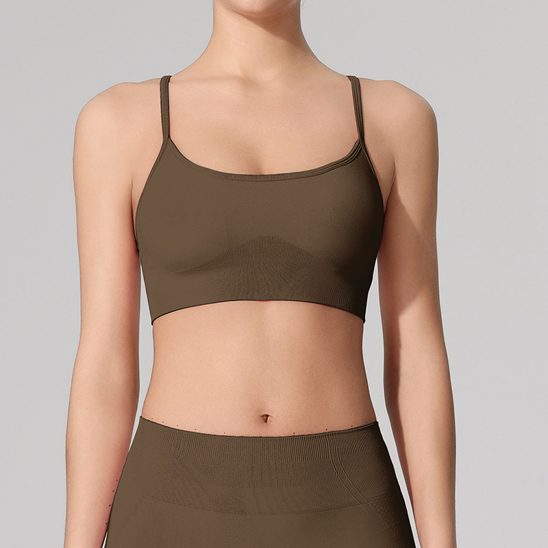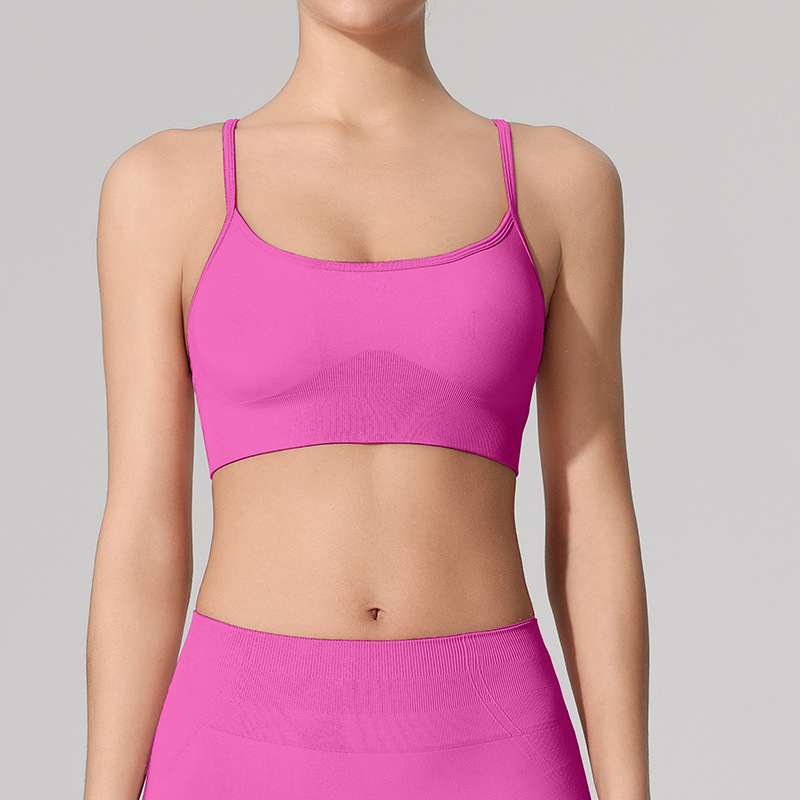 편안한 누드감 요가탑 러닝 피트니스 브라 요가복 상의 크로스백 슬림 숄더 스트랩 스포츠 브라