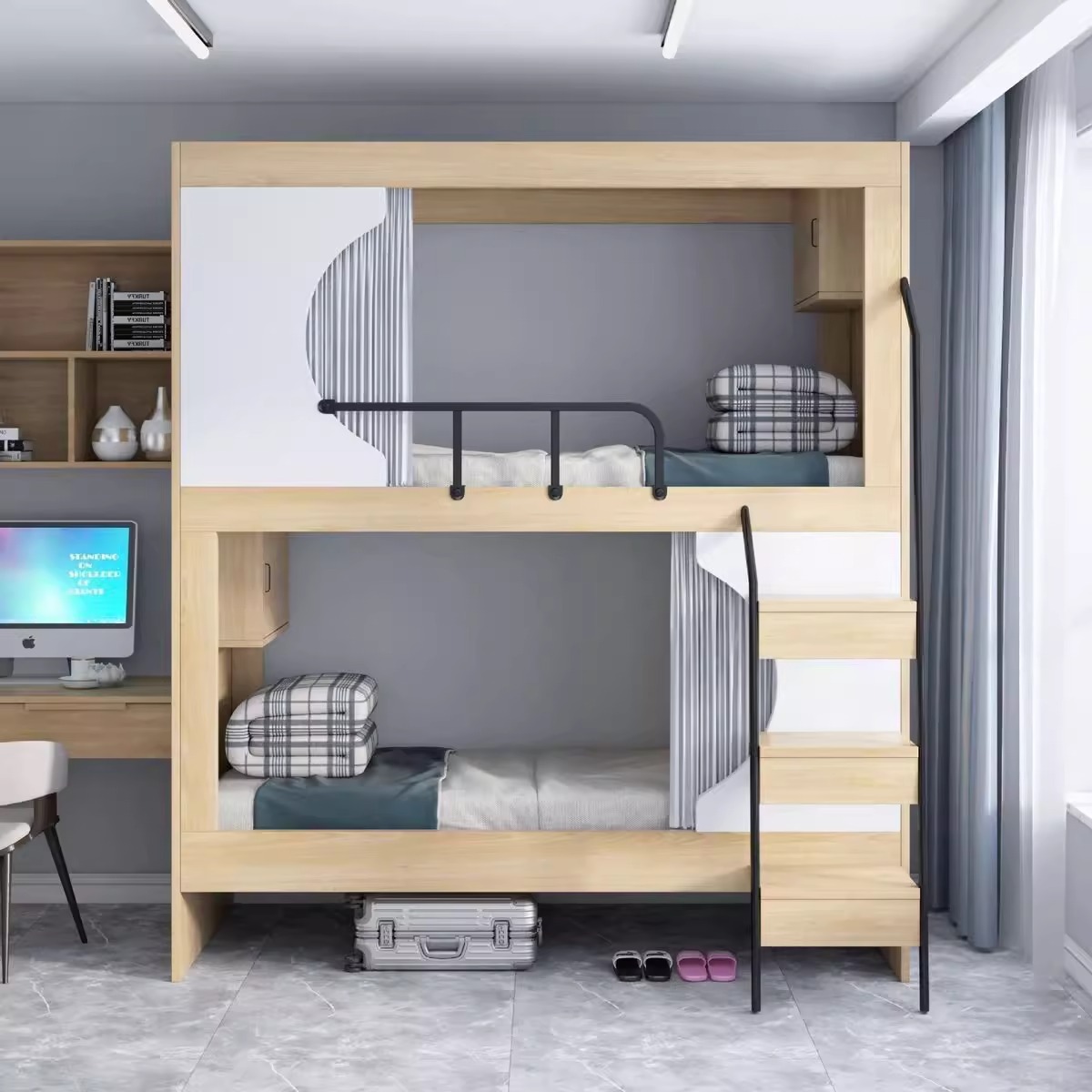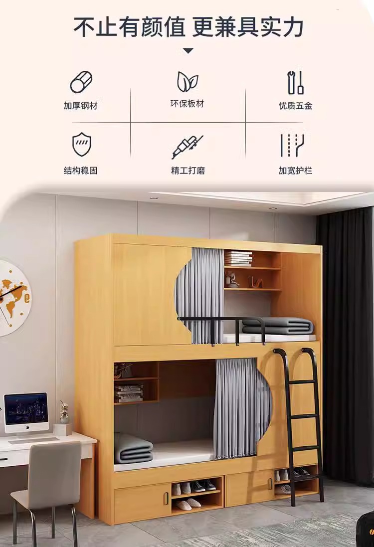 우주 캡슐 침대와 침대 현대 간단한 청소년 호스텔 홈 스테이 솔리드 우드 벙크 침대 학생 기숙사 모든 것을 포함하는 아파트 침대
