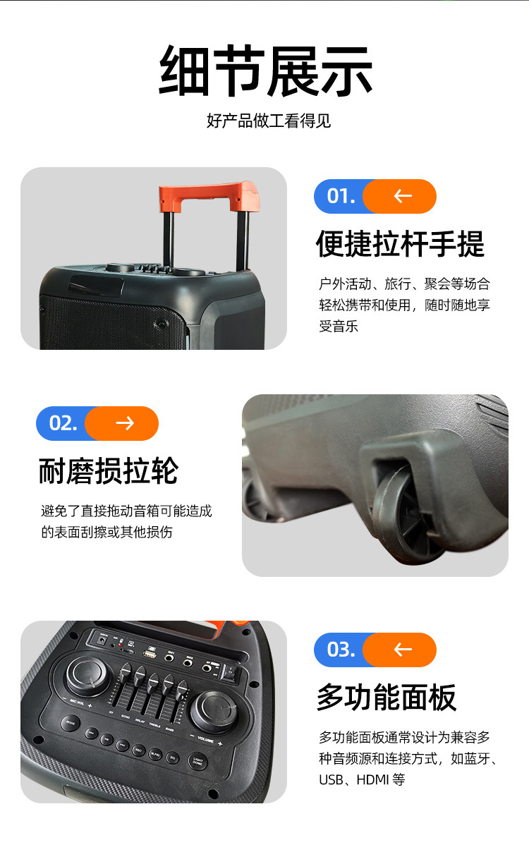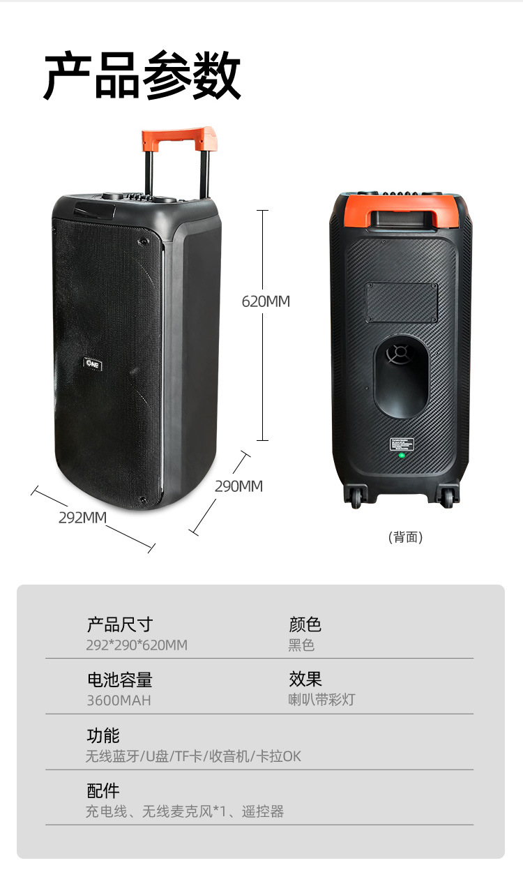 ONE 야외 광장 댄스 스피커 모바일로드 다채로운 사운드 대용량 무선 마이크 블루투스 사운드
