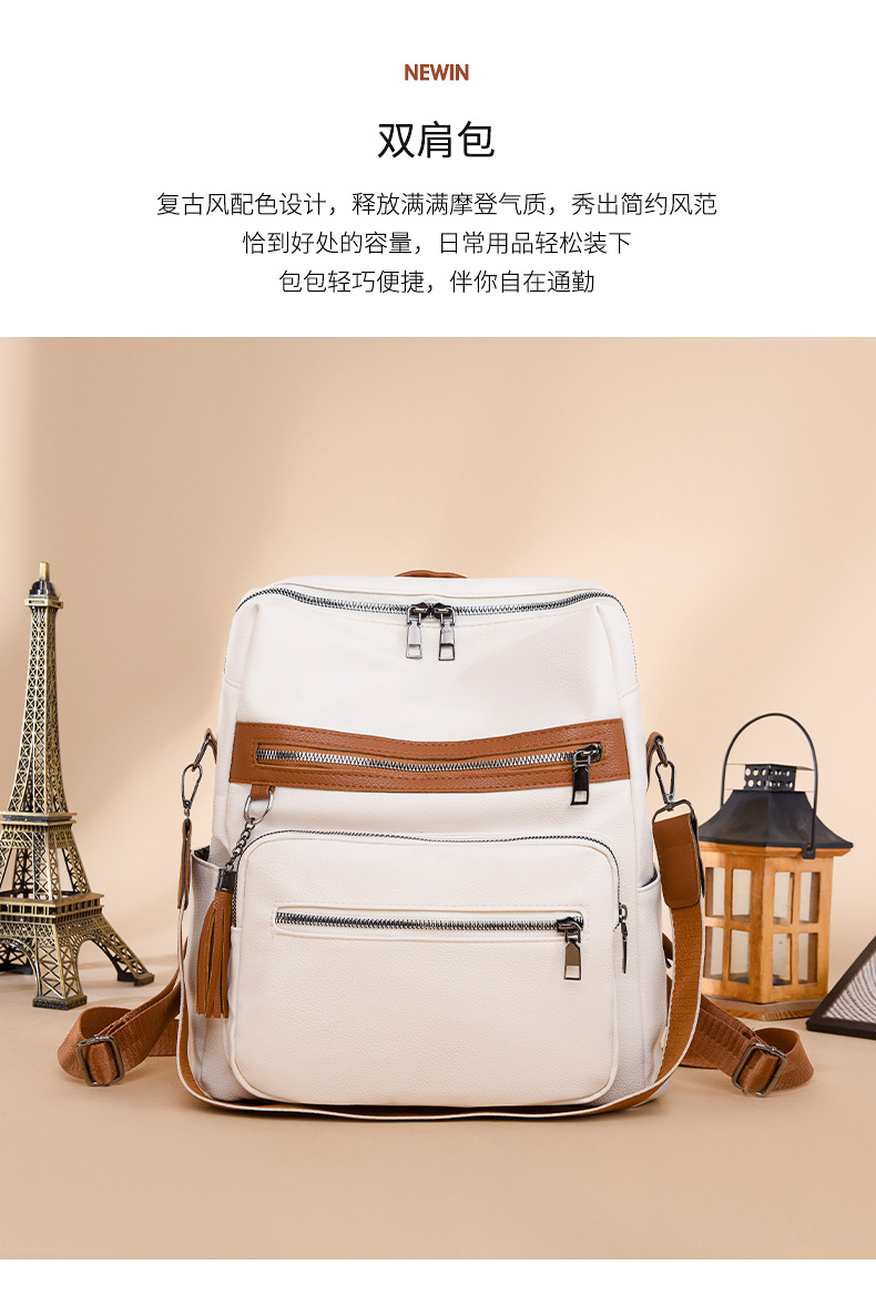 숙녀 배낭 2024 새로운 대용량 pu 복고풍 캐주얼 배낭 컬러 대비 배낭 여성 가방 도매스토어 가기