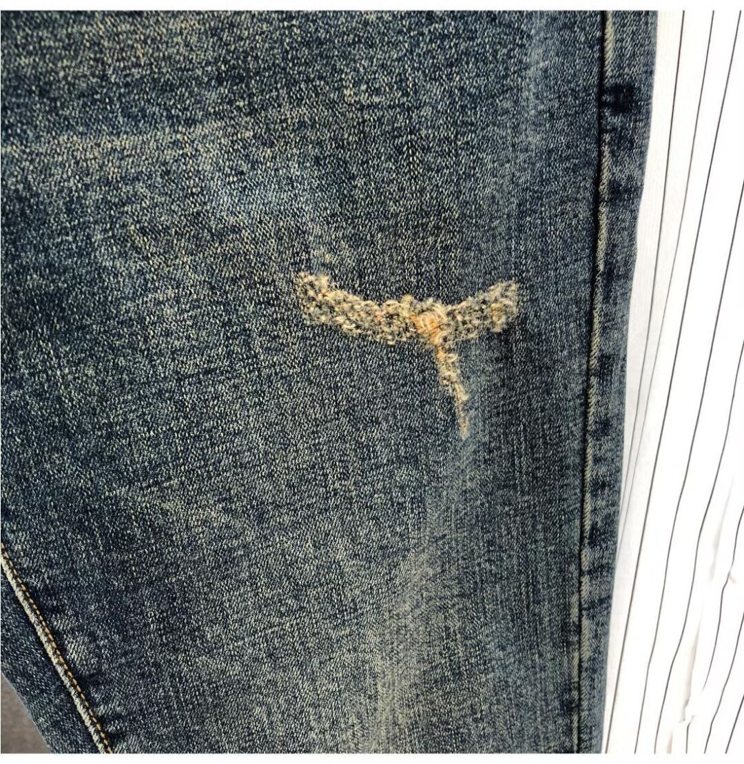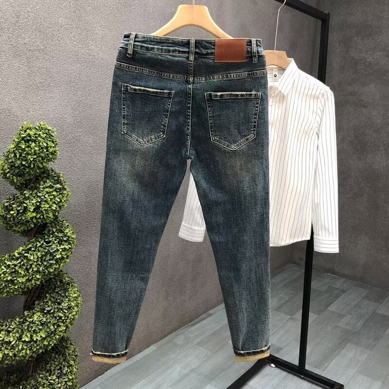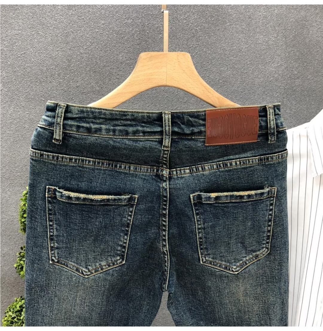 찢어진 청바지 남자 봄과 여름 2024 새로운 도착 유행 올매치 슬림-적합 유행 작은 발 브랜드 하이 엔드 자른 바지스토어 가기