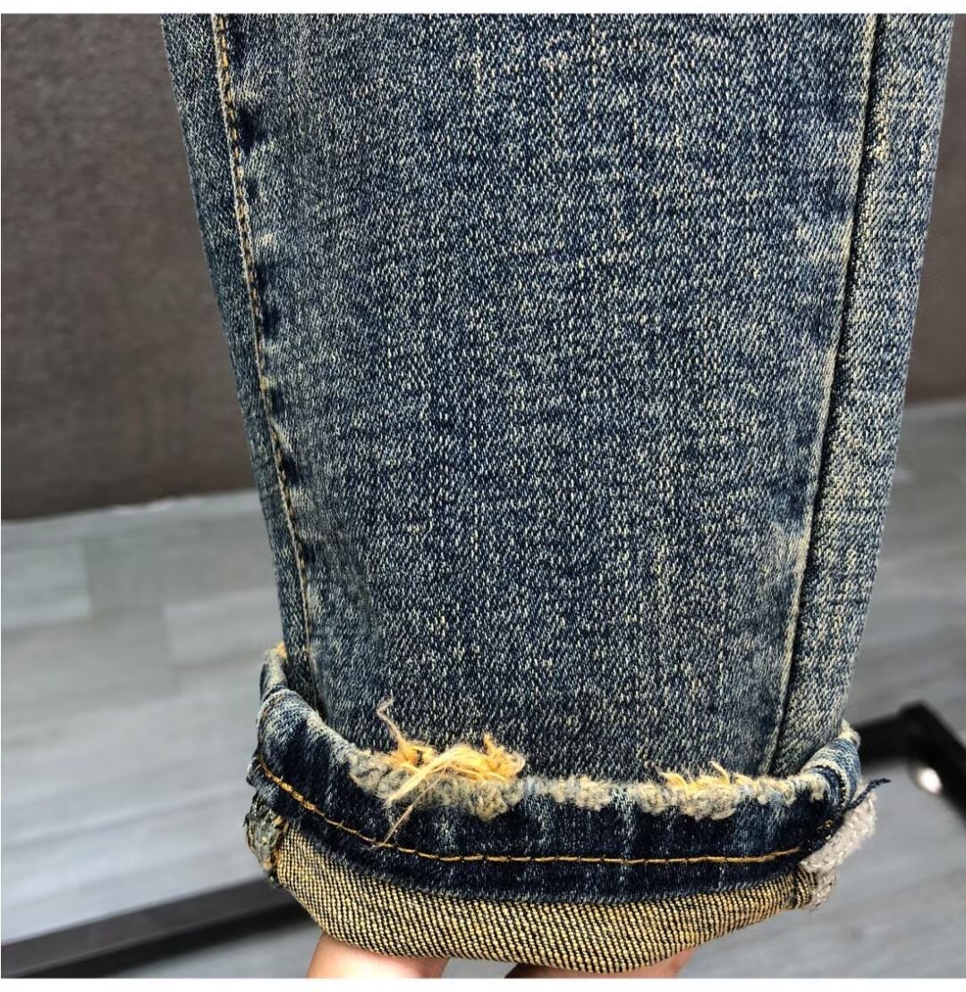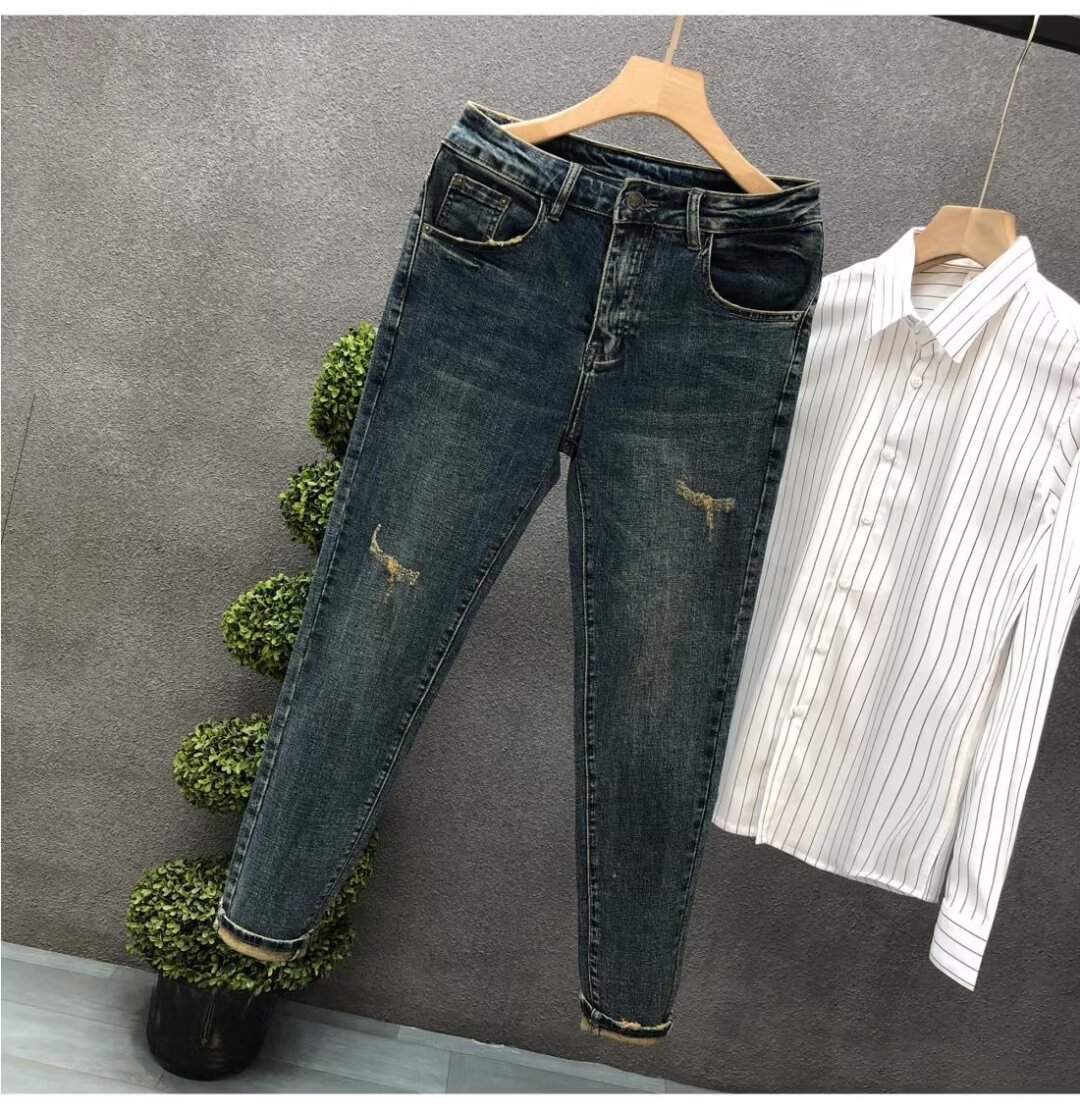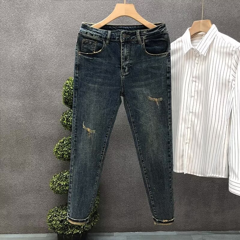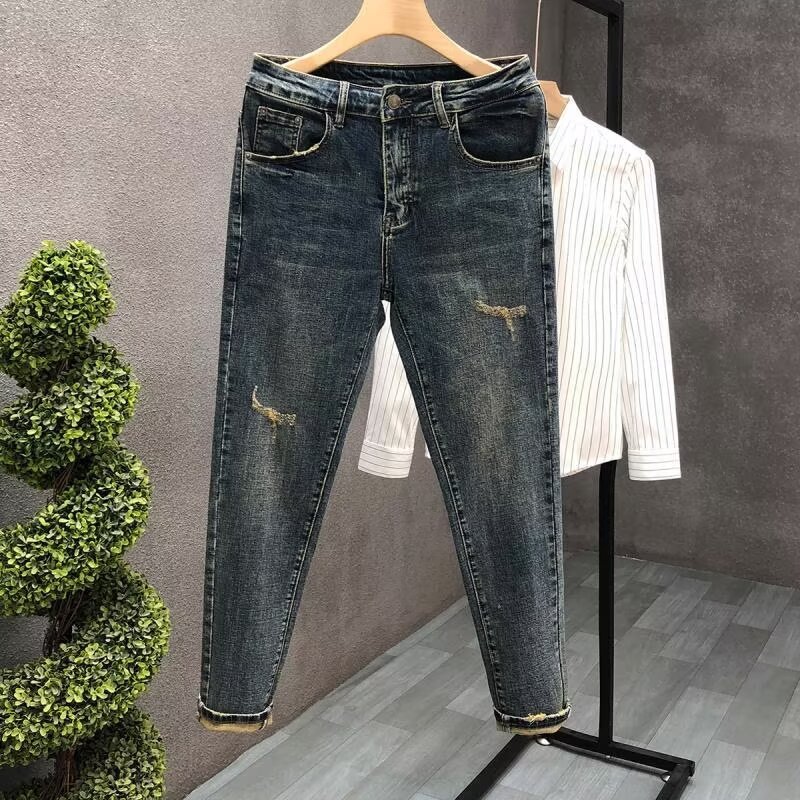 찢어진 청바지 남자 봄과 여름 2024 새로운 도착 유행 올매치 슬림-적합 유행 작은 발 브랜드 하이 엔드 자른 바지스토어 가기
