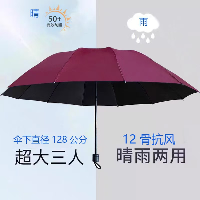 • 12본 강화 3인용 방풍 방수 우산 - 와인색