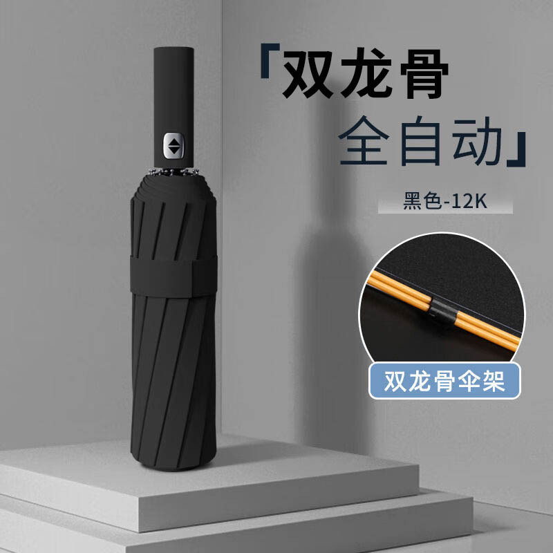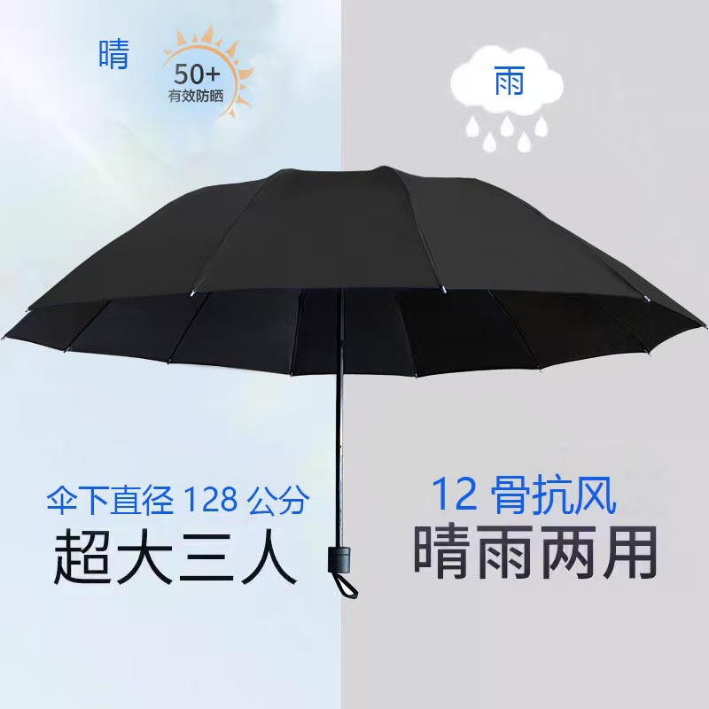 • 12본 강화 3인용 방풍 방수 우산 - 블랙