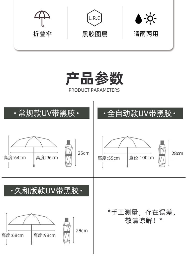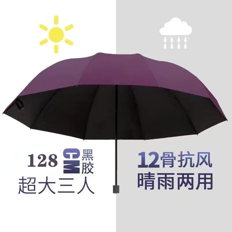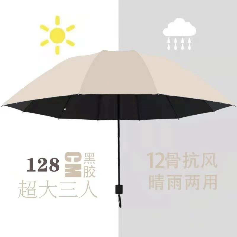 자동 수동 접히는 두꺼운 검은 고무 우산 휴대용 선 스크린 햇살 우산 태양 우산 대형 도매