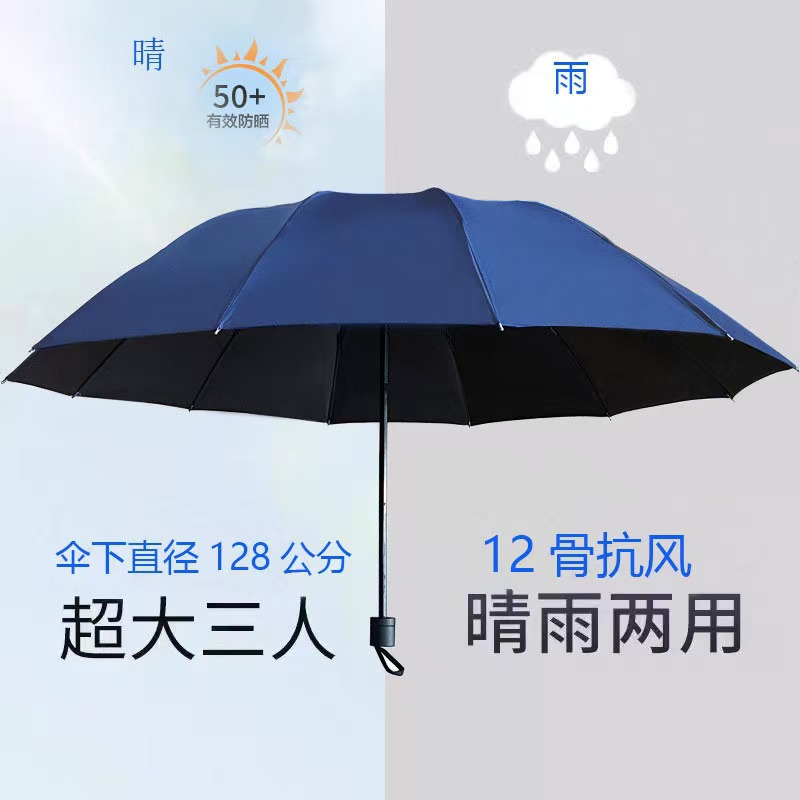 • 12본 강화 3인용 방풍 방수 우산 - 네이비
