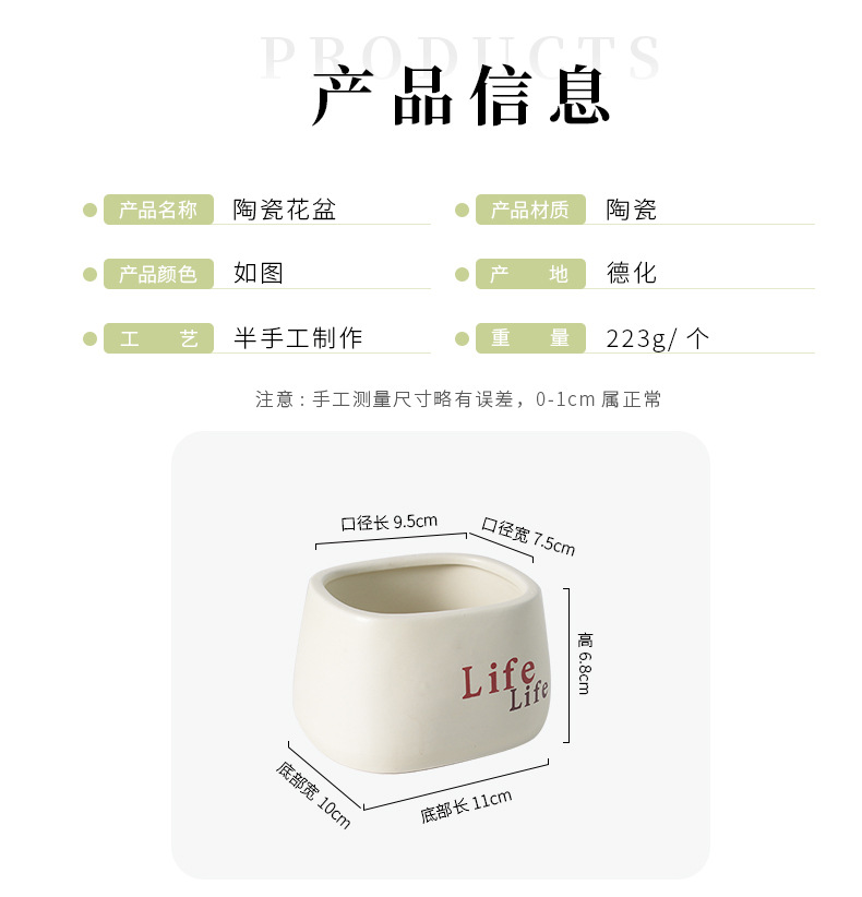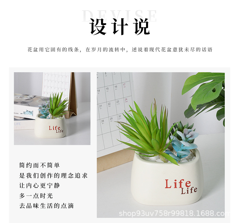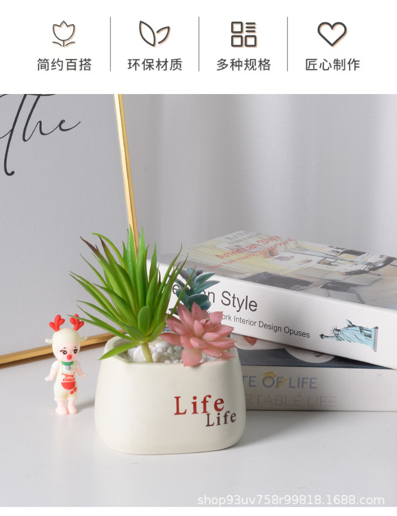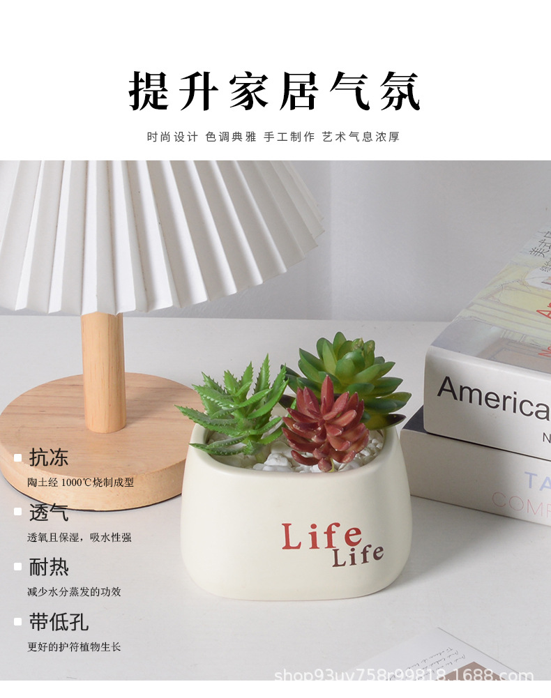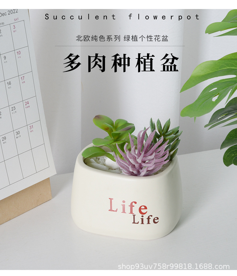 간단한 다육식물 화분, 가정용 발코니 장식 세라믹 장식품, 창의적인 생활 녹색 식물, 다육식물 화분, 세라믹 꽃병