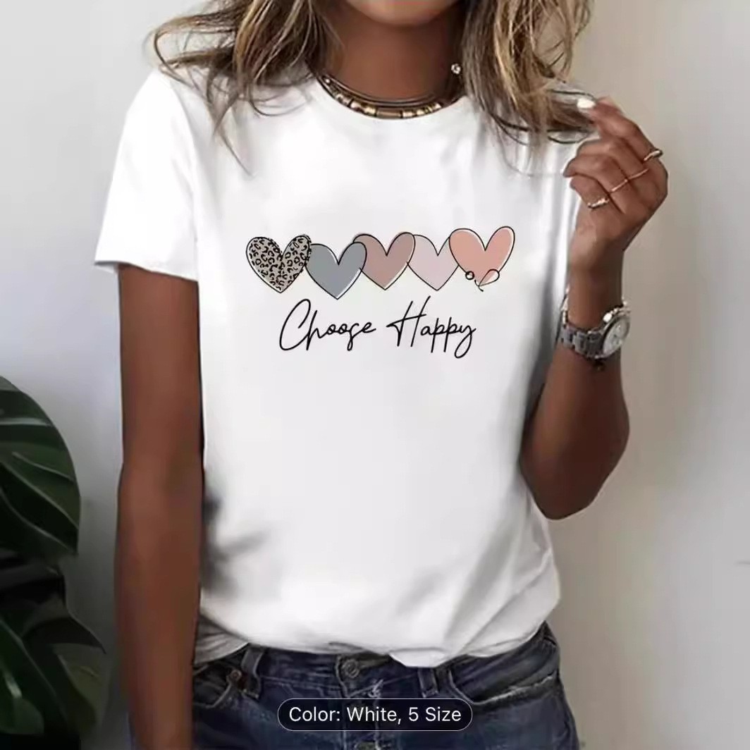 2024 유럽과 미국의 국경 간 반점 인쇄 둥근 목 티셔츠 봄과 여름 캐주얼 짧은 소매 라운드 넥 탑 짧은 소매 여성용 티셔츠스토어 가기
