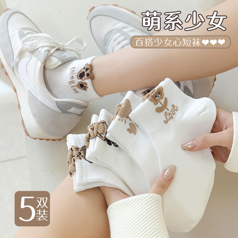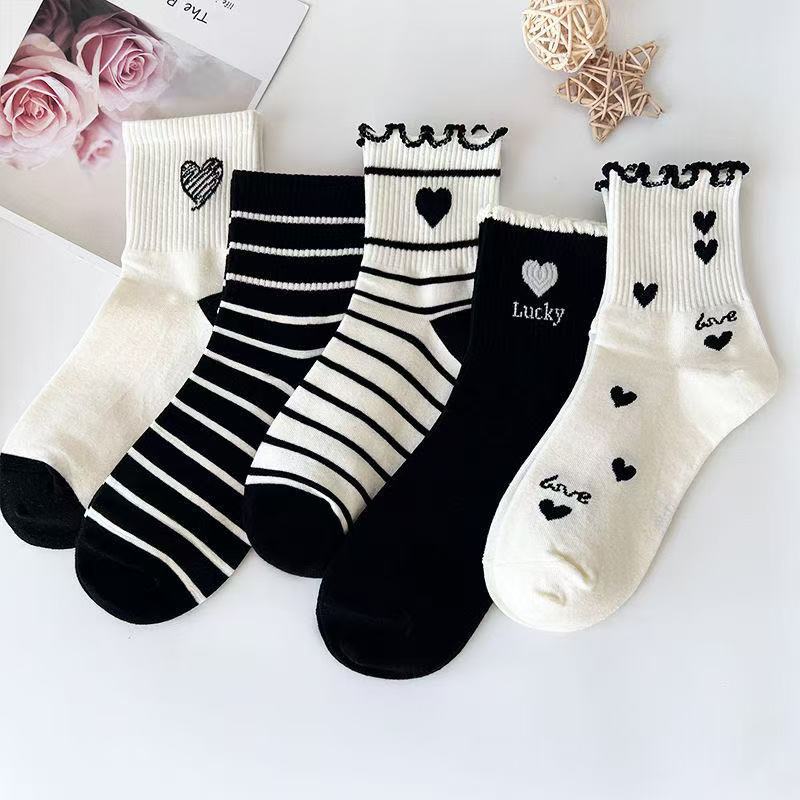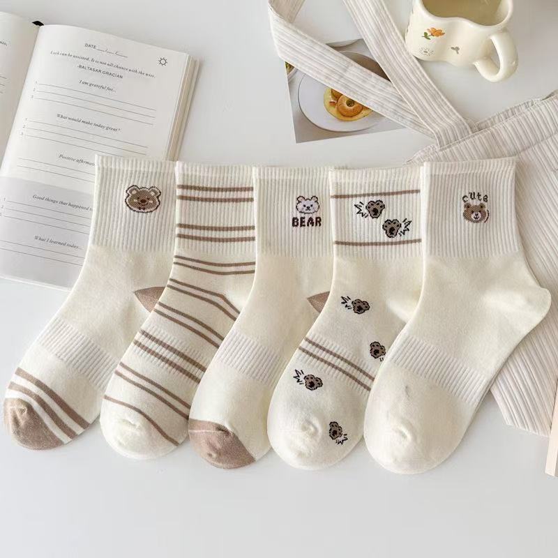 • 여성 양말 허리 C 문자 5 쌍 [와]