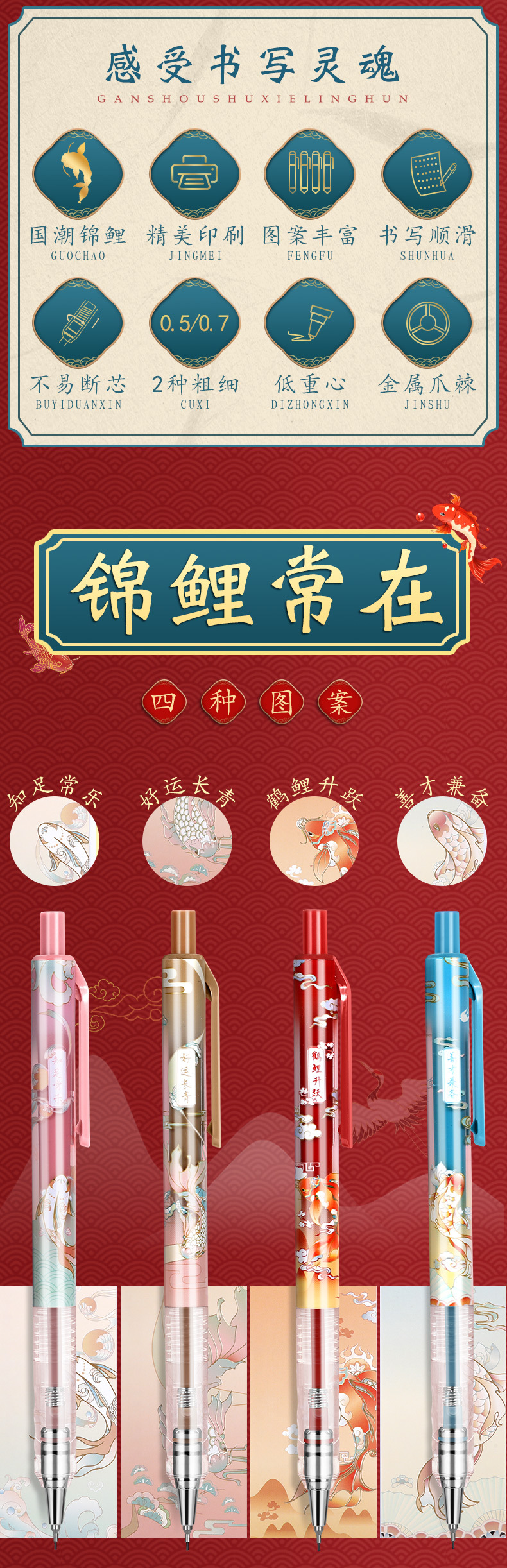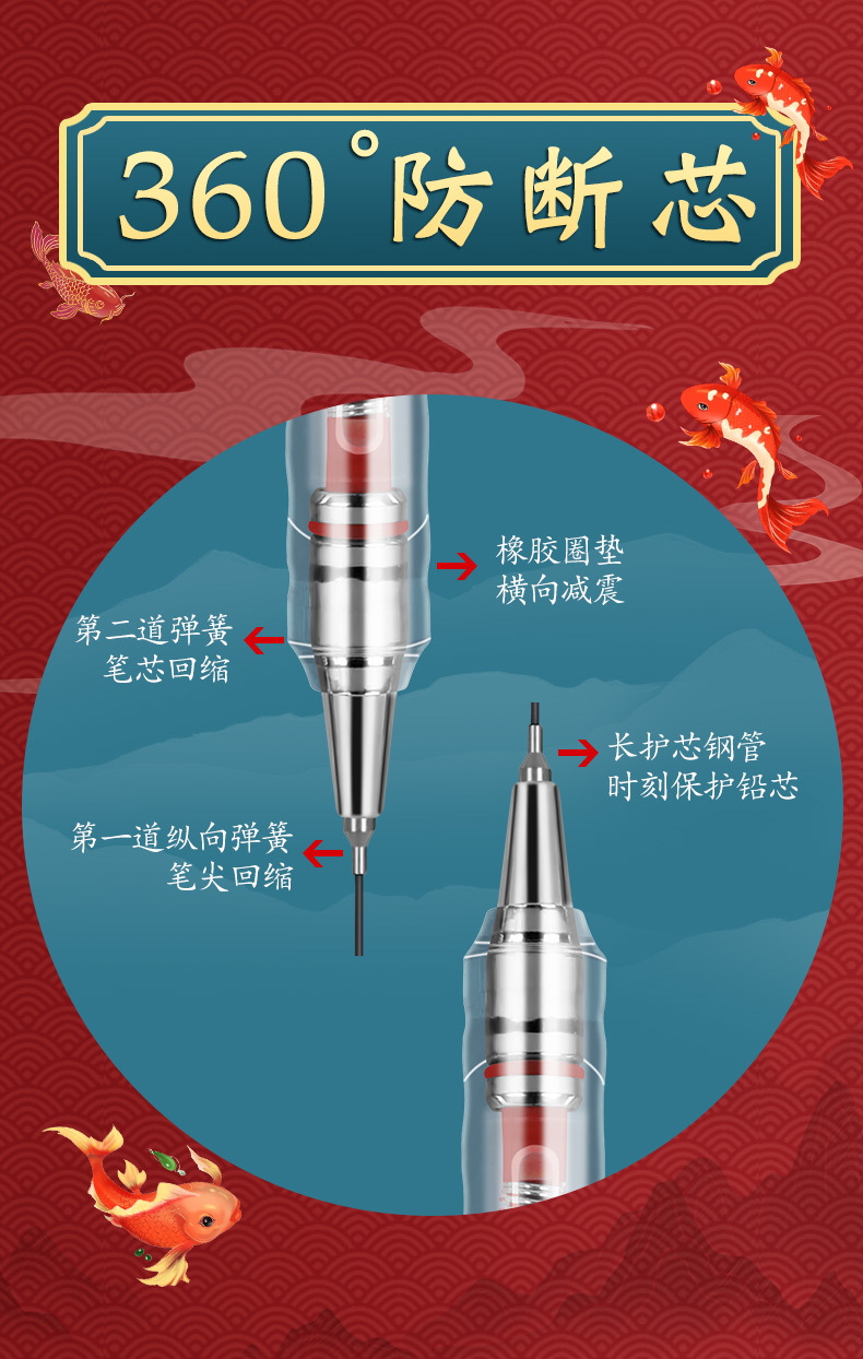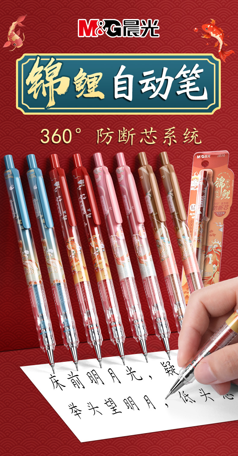 아침햇살 잉어가 자동연필을 타고 온다 학생용 연속심 0.7 자동펜 고급스러운 0.5 샤프펜슬