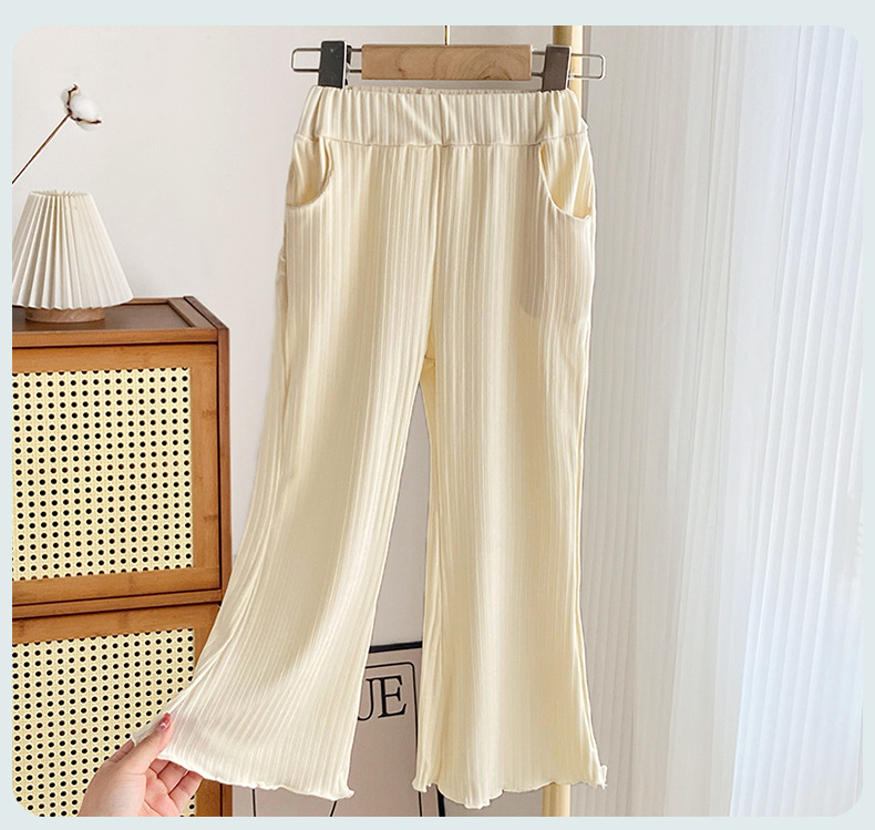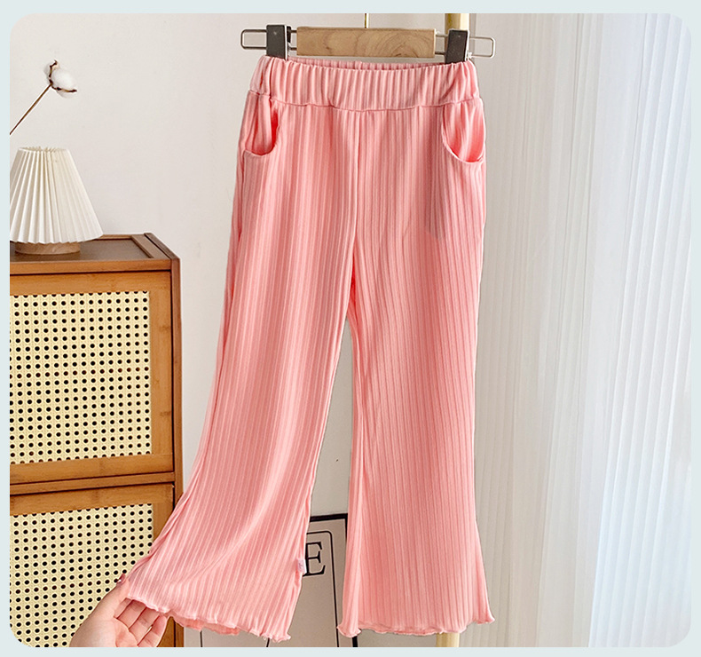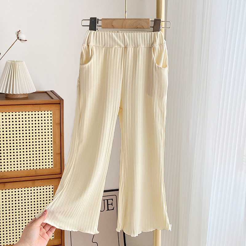 여자 플라워 바지 올매치 어린이 여름 캐주얼 바지 얇은 아이스 실크 바지 공주 스타일 우드 이어 와이드 레그 바지
