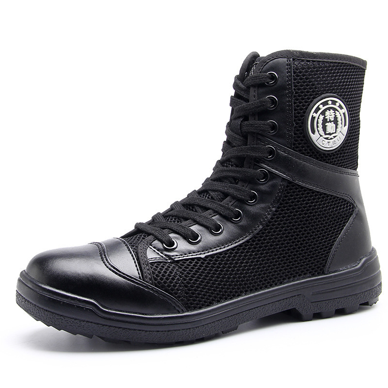 保安鞋作战靴男靴安检消防作训鞋黑色军靴春夏战训高帮靴子