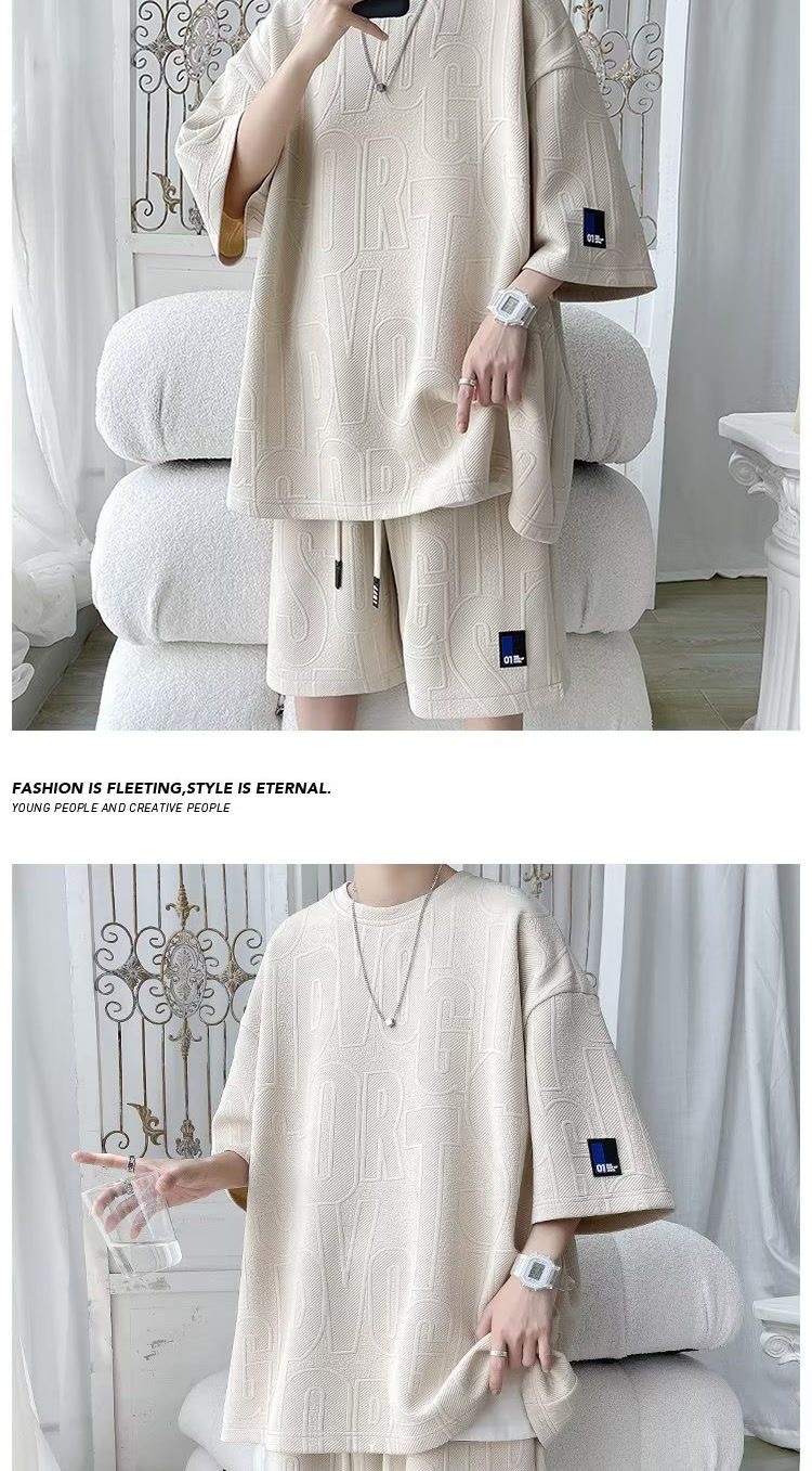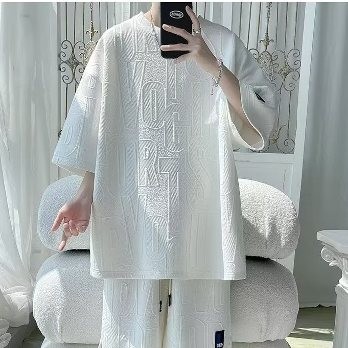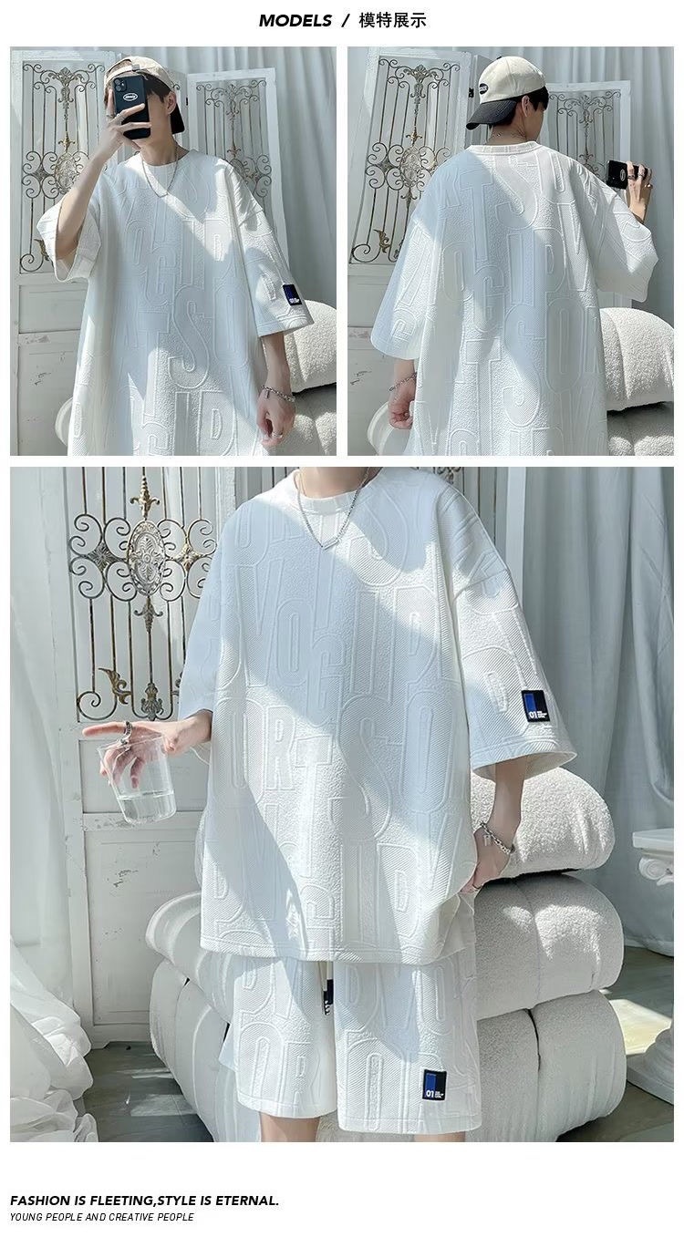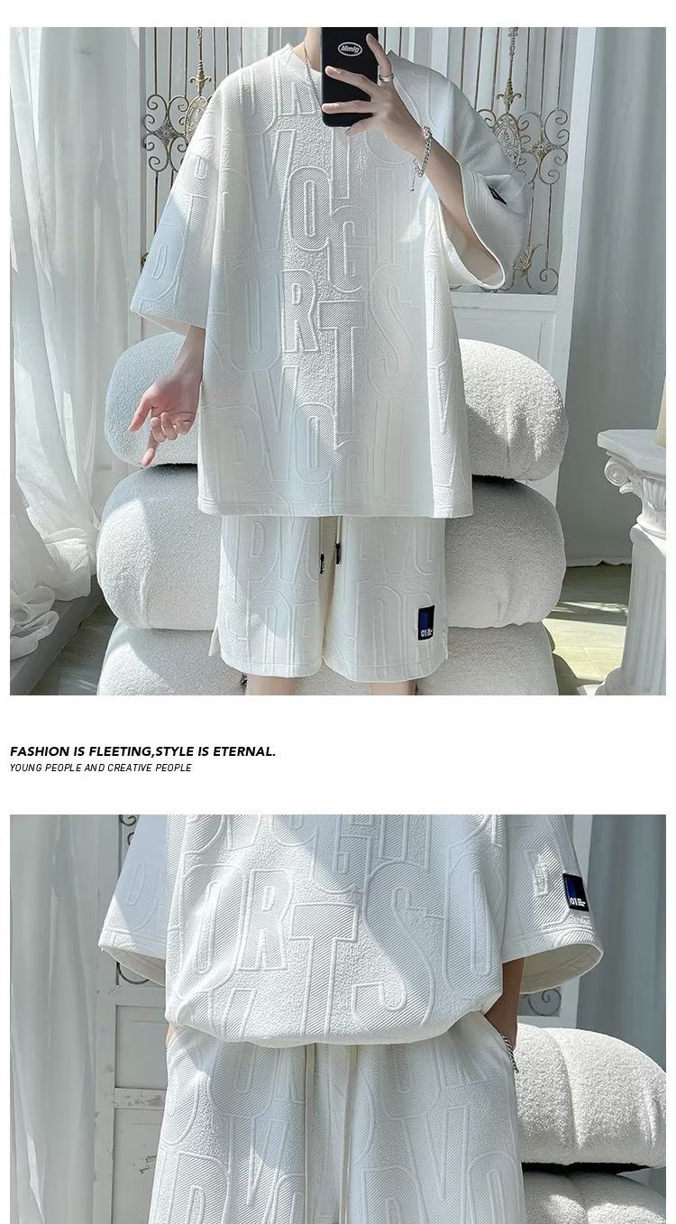 여름 패션 세트 남성 패션 브랜드 잘 생긴 세트 느슨한 캐주얼 스포츠 자카드 짧은 소매 반바지 투피스 세트