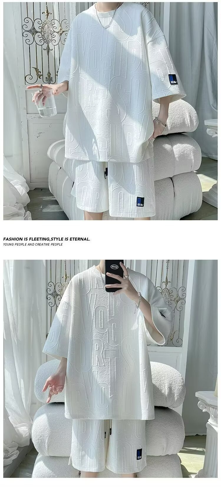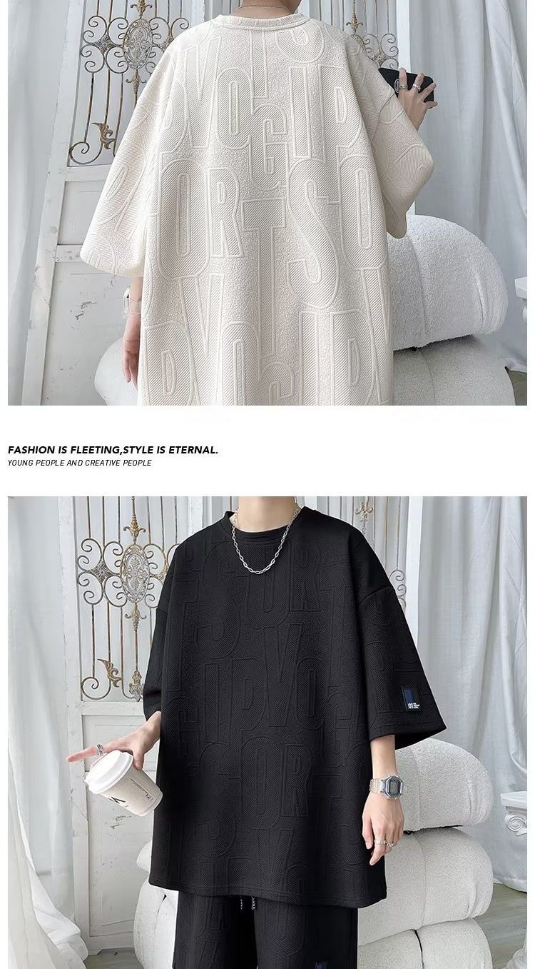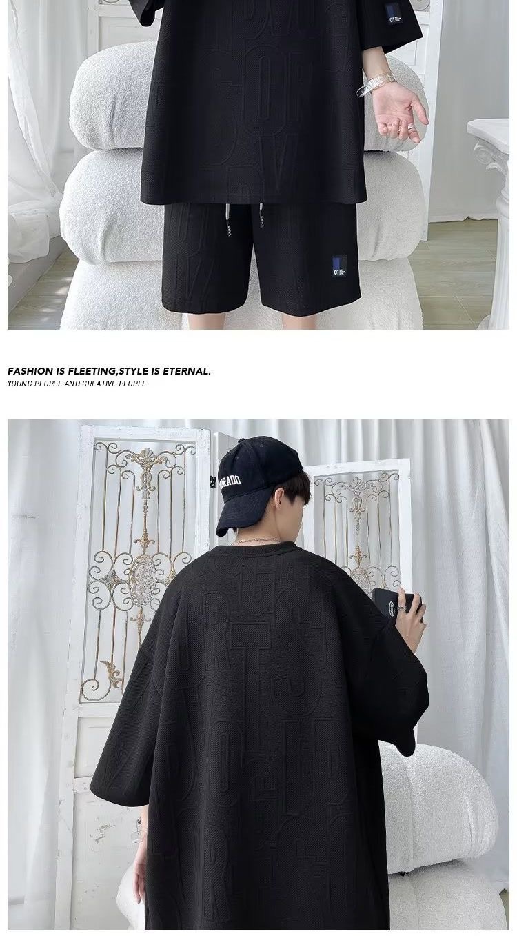여름 패션 세트 남성 패션 브랜드 잘 생긴 세트 느슨한 캐주얼 스포츠 자카드 짧은 소매 반바지 투피스 세트