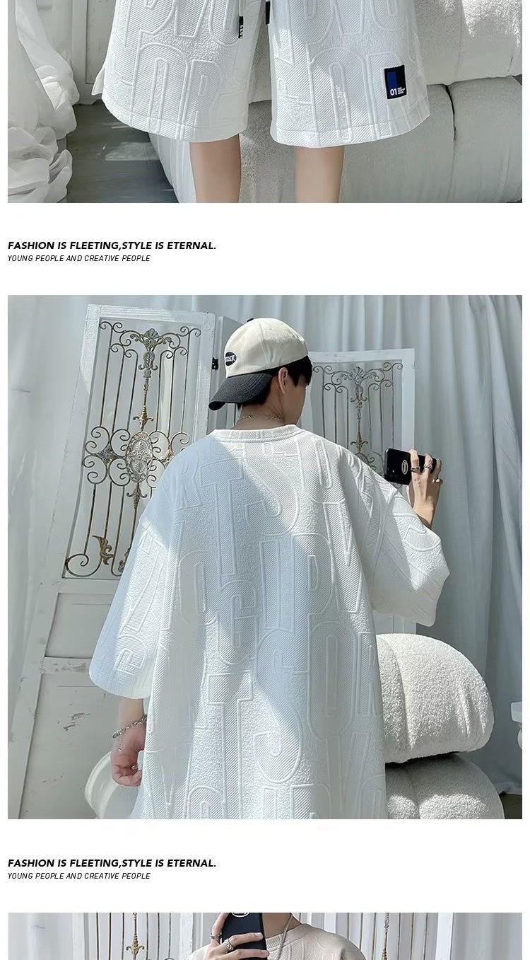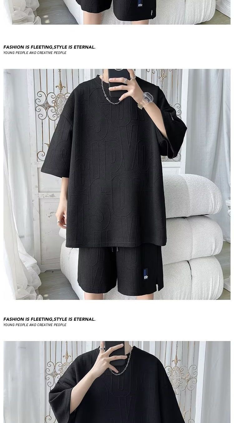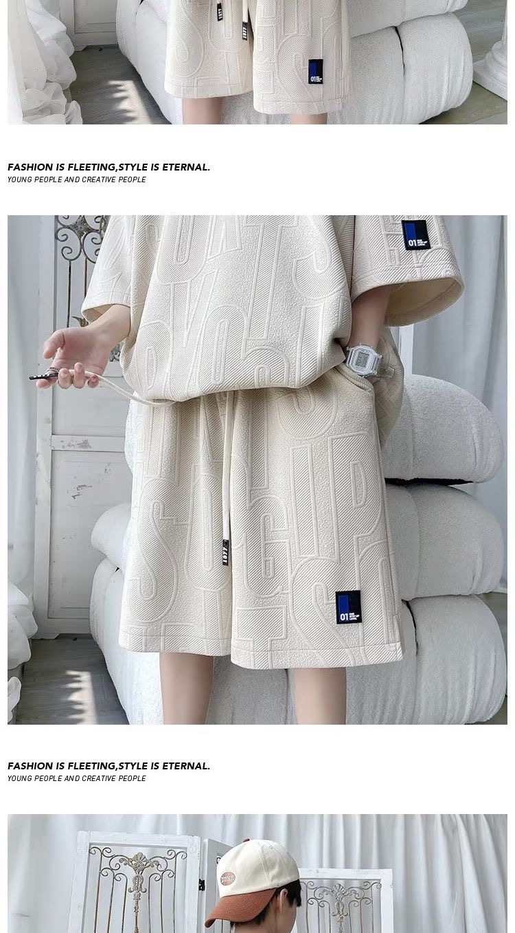 여름 패션 세트 남성 패션 브랜드 잘 생긴 세트 느슨한 캐주얼 스포츠 자카드 짧은 소매 반바지 투피스 세트스토어 가기