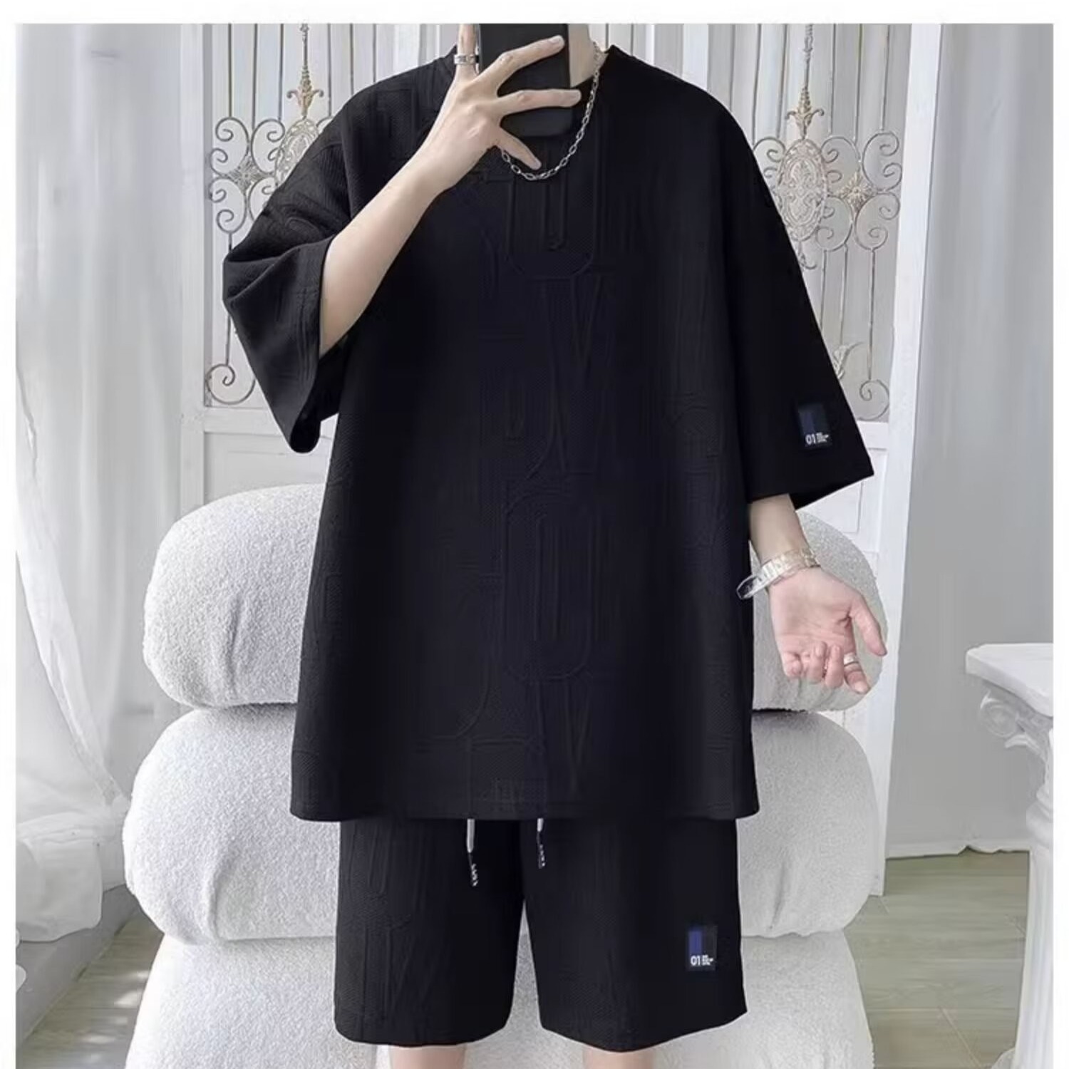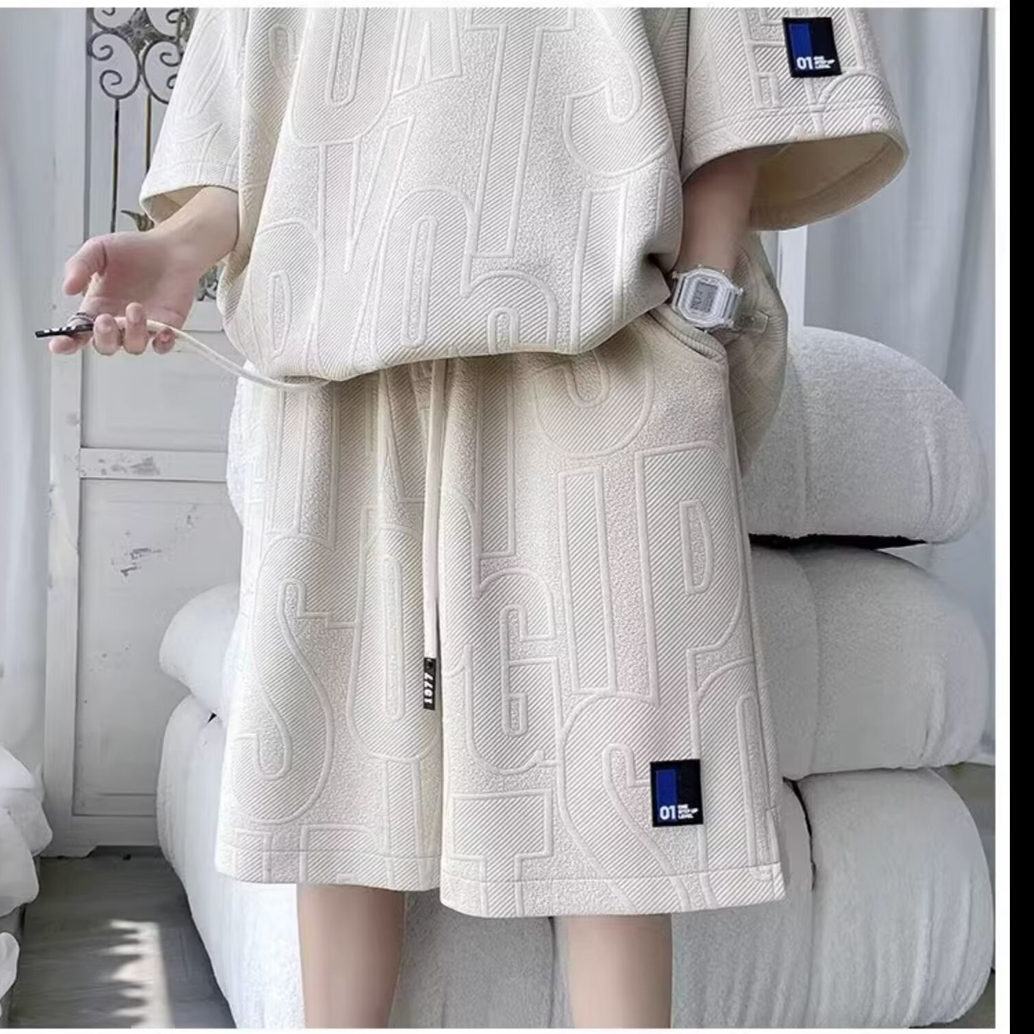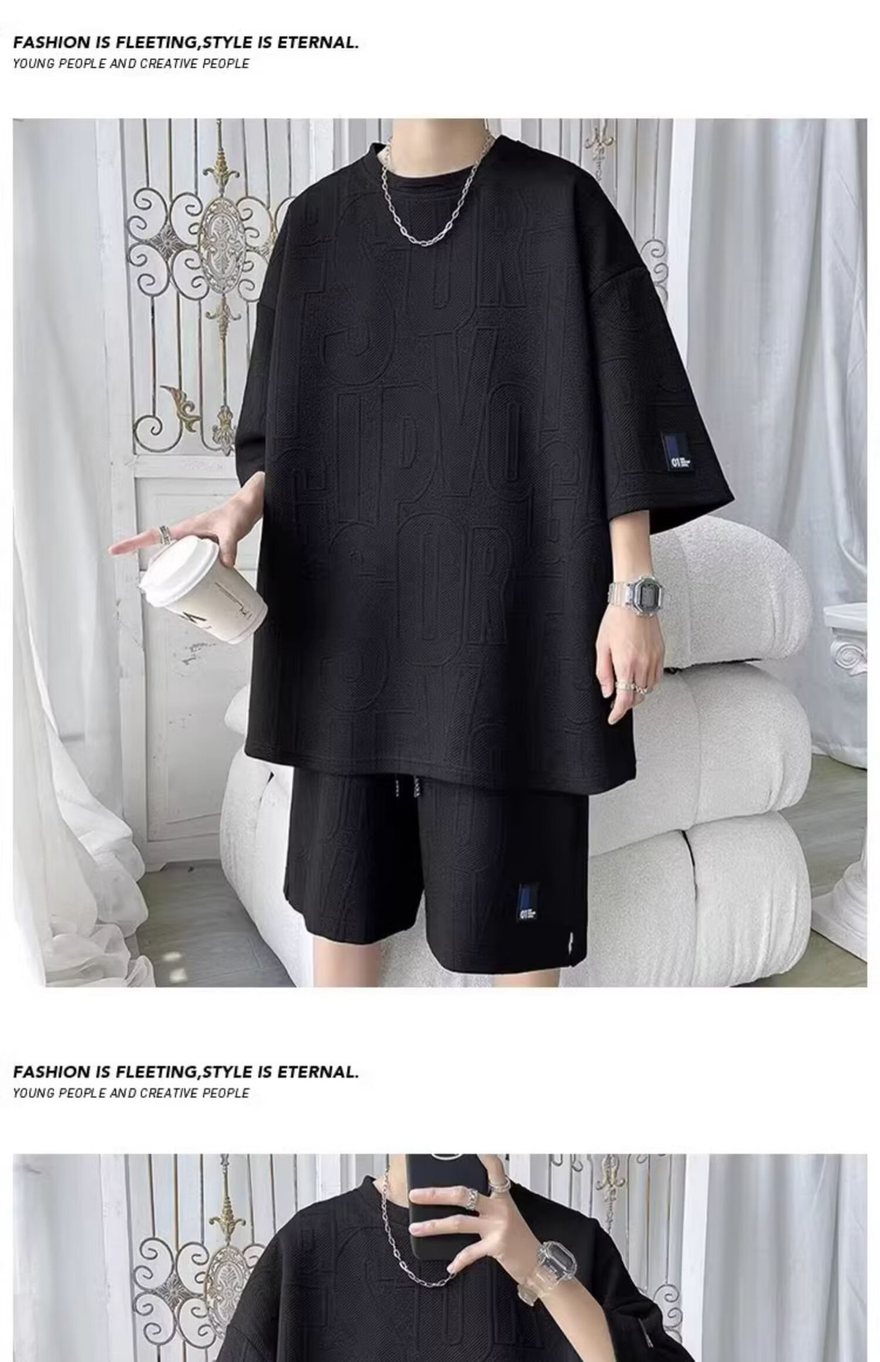 여름 패션 세트 남성 패션 브랜드 잘 생긴 세트 느슨한 캐주얼 스포츠 자카드 짧은 소매 반바지 투피스 세트스토어 가기