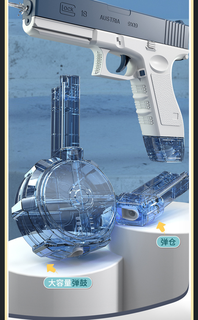 • 전기 Glock 드럼 카트리지 물 총-블루 (영어 컬러 박스)