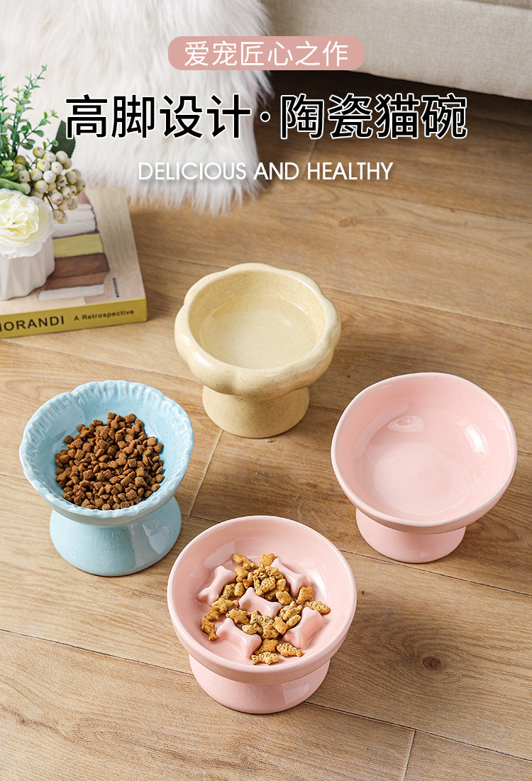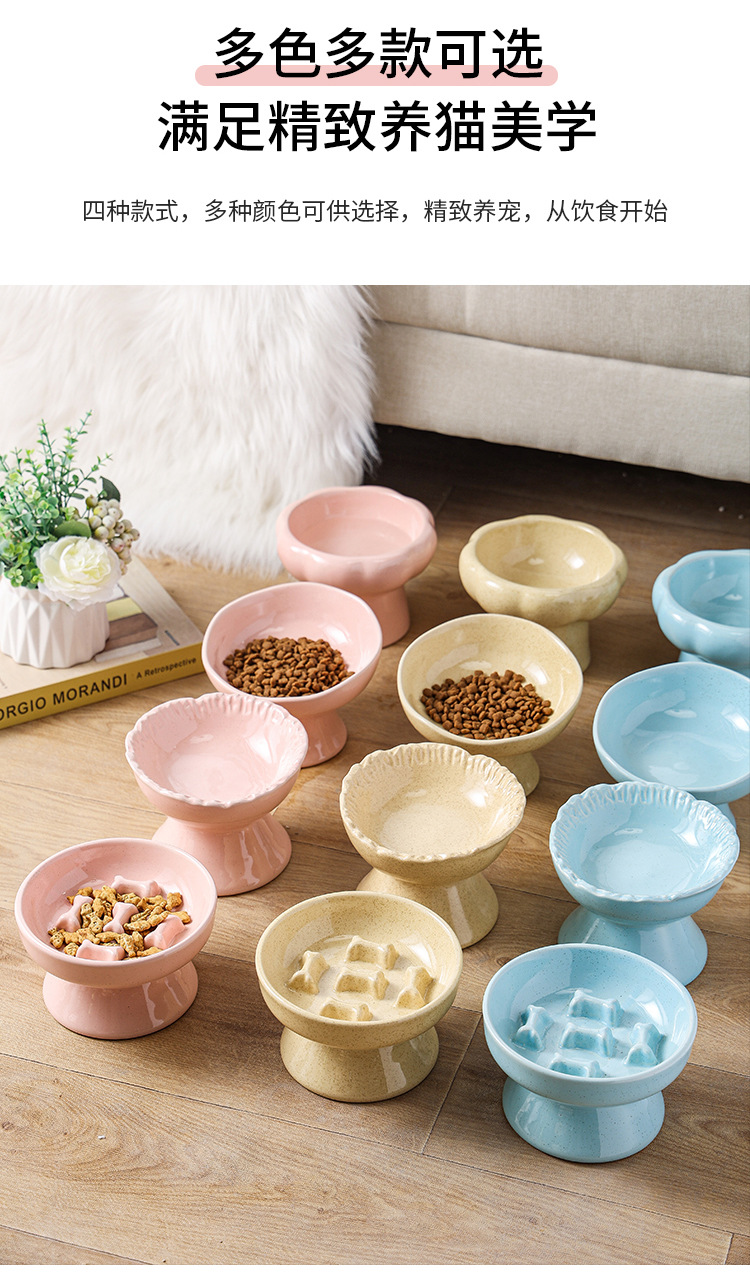 고양이 그릇 세라믹 애완 동물 그릇 큰 구경 고양이 음식 느린 음식 그릇 개 식품 분지 전복 방지 보호 자궁 경부 척추 고양이 물 그릇