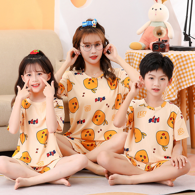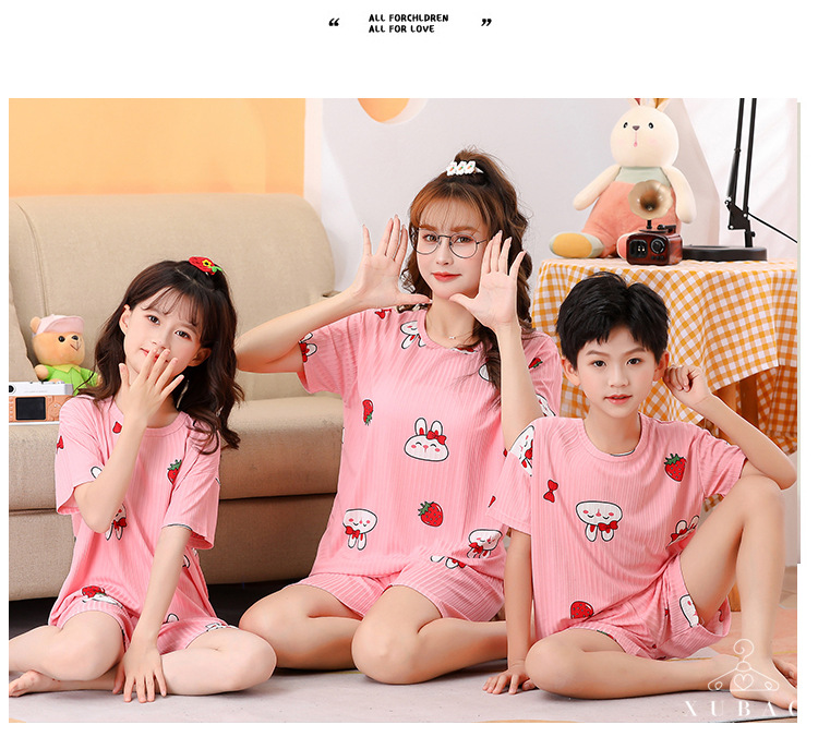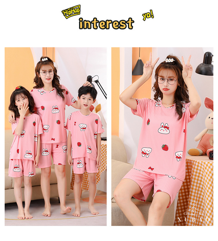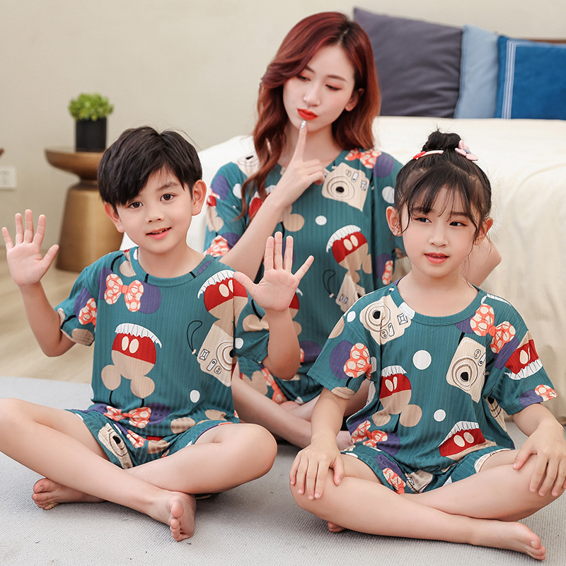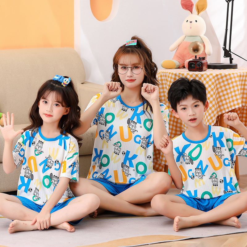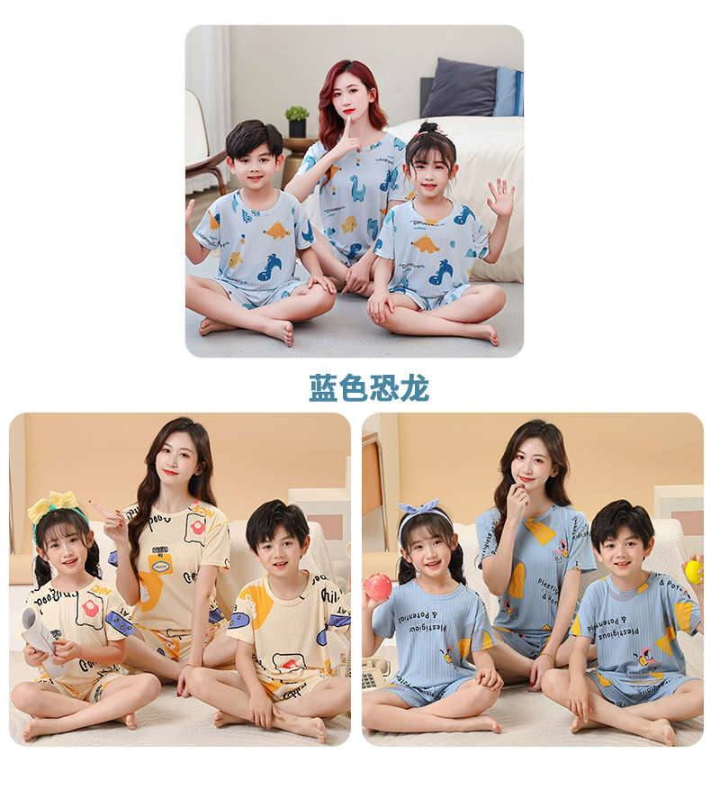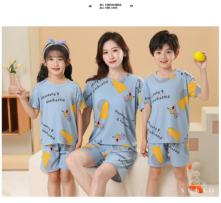 25 여름 부모-자녀 루즈핏 캐주얼 에어컨 홈웨어 중대형 남녀 아동용 만화 반팔 반바지 잠옷 투피스 세트스토어 가기