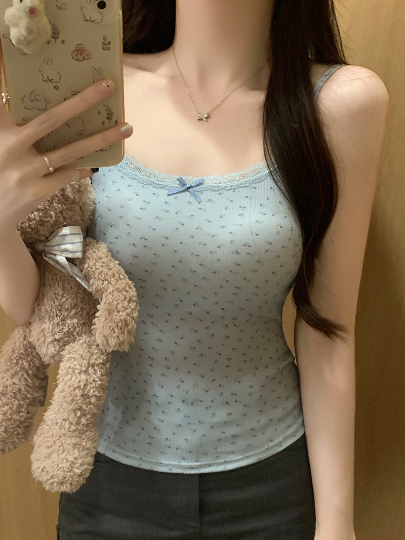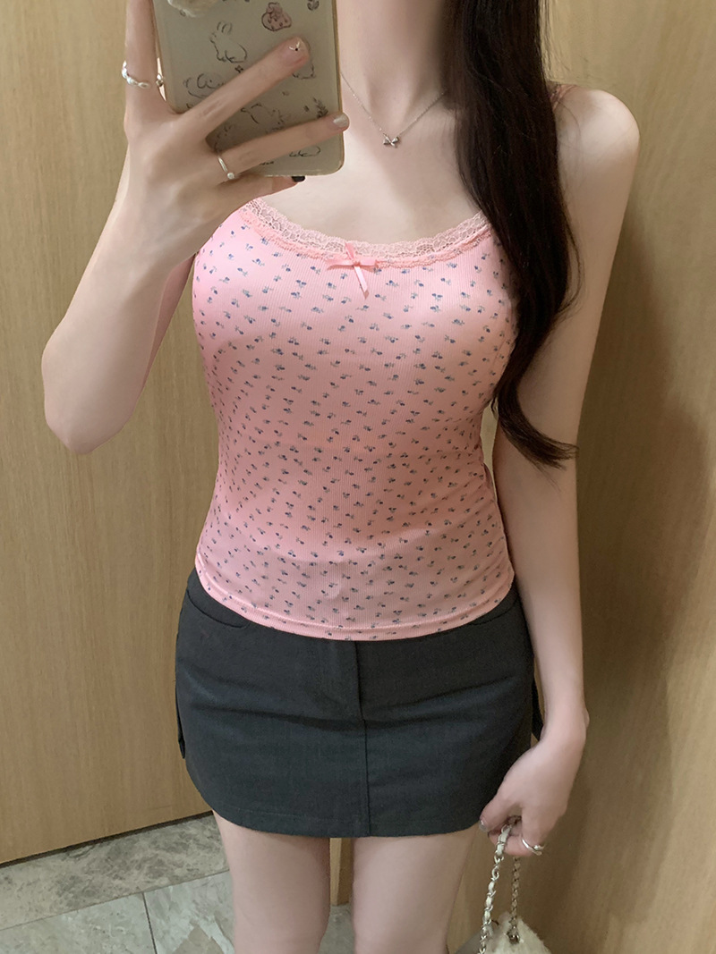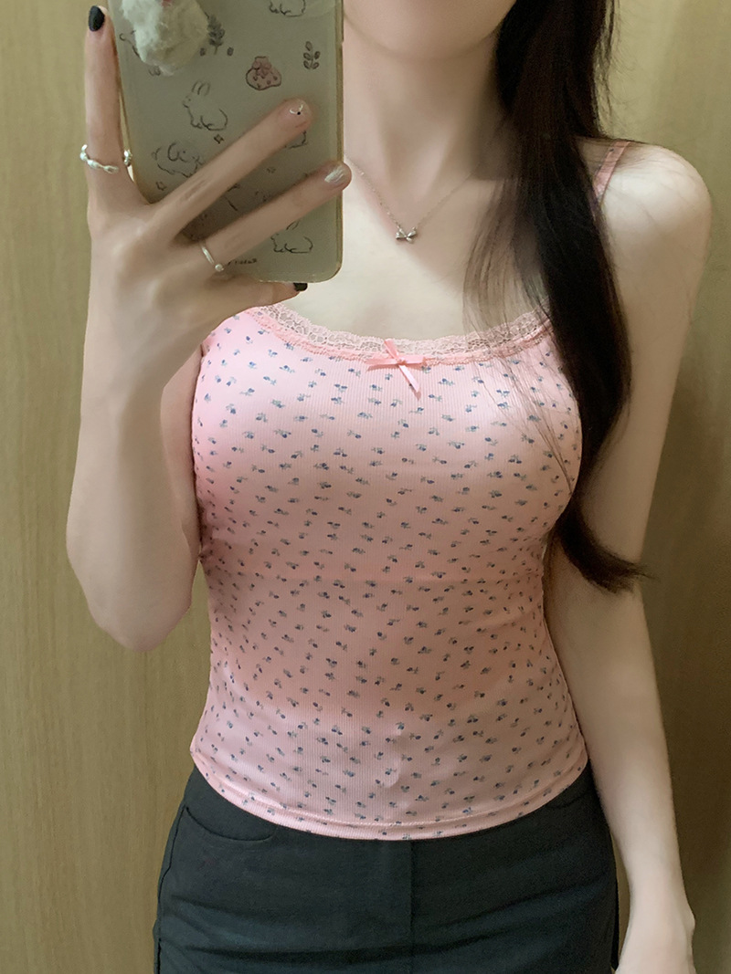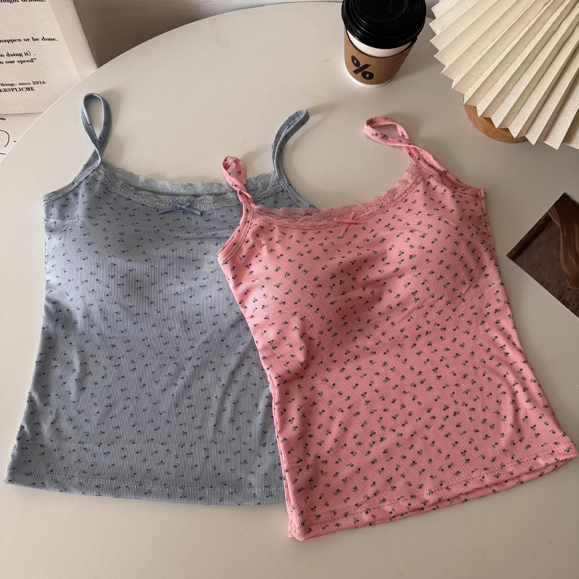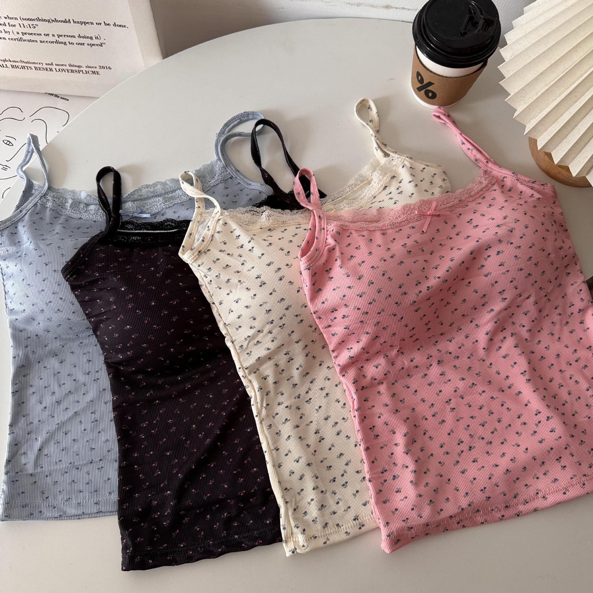 순수한 욕망 스타일 한국 스타일 꽃 슬링 아름다운 스트랩 스트랩 가슴 패드 레이스 고정 컵 안티 라이트 뜨거운 소녀 달콤한 조끼 탑스토어 가기